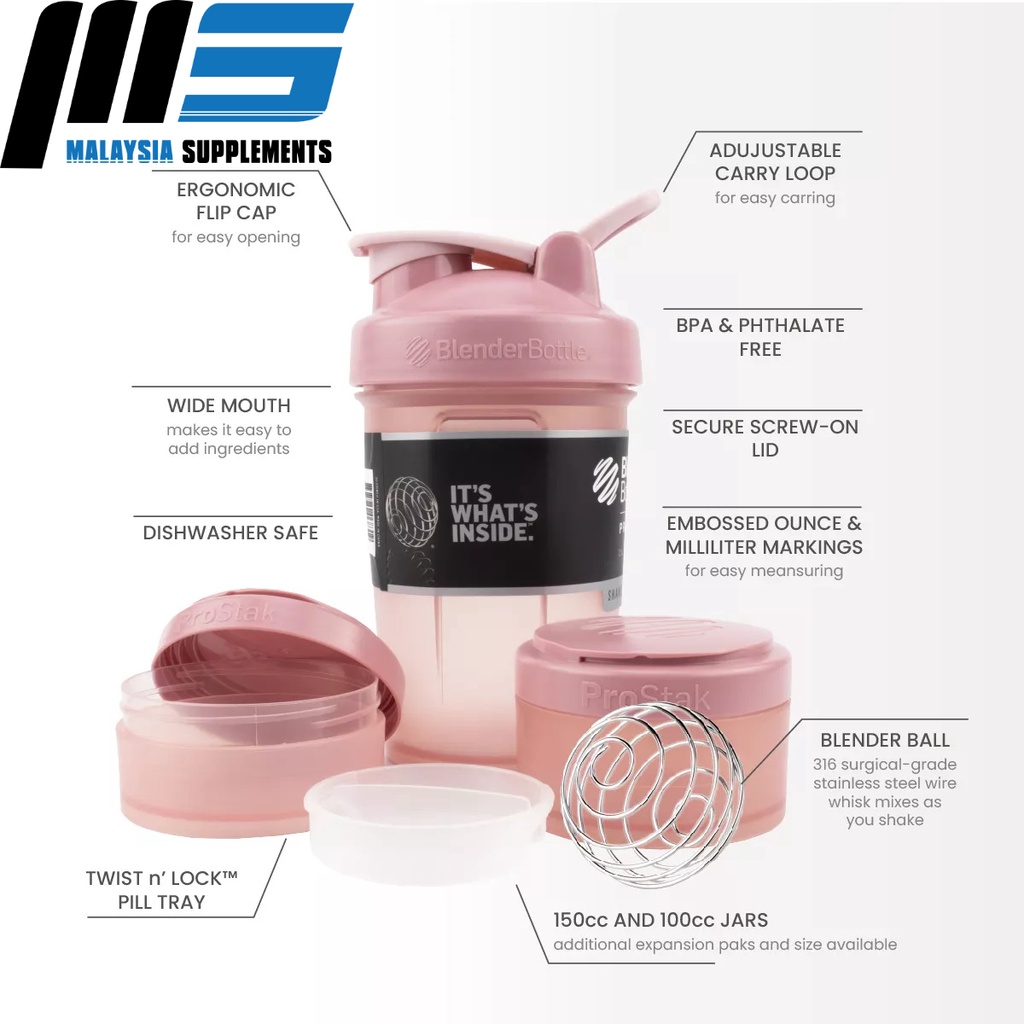 Blenderbottle Prostak 22oz เครื่องปั่นโปรตีนพกพาห่วงรั่วถาดยาภาชนะบรรจุผง