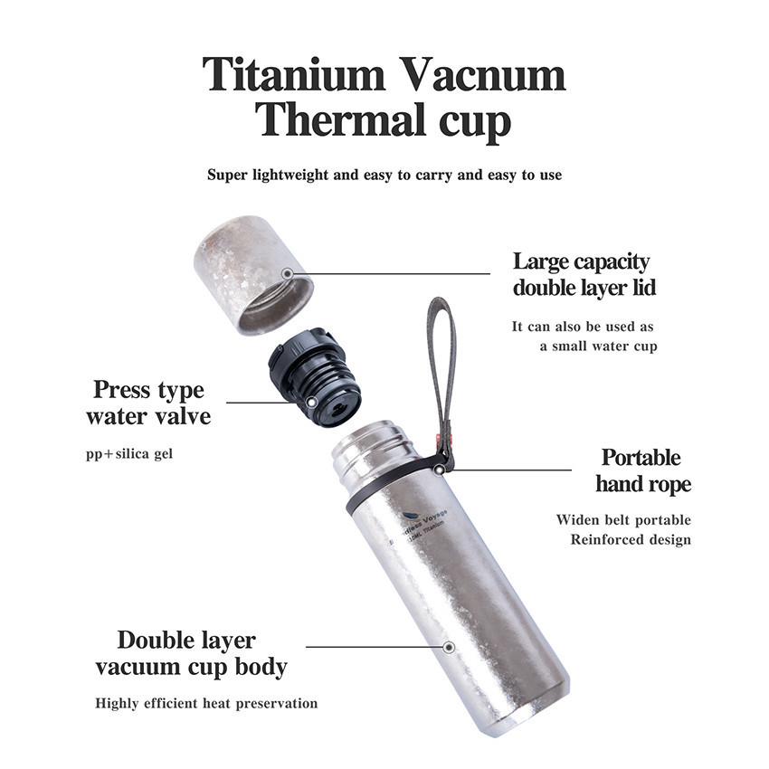 Boundless Voyage กระติกน้ําร้อน น้ําเย็น ไทเทเนียม สุญญากาศ ขนาด 510 มล. สําหรับขี่จักรยาน เดินป่า กลางแจ้ง
