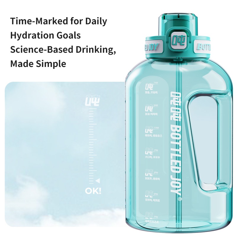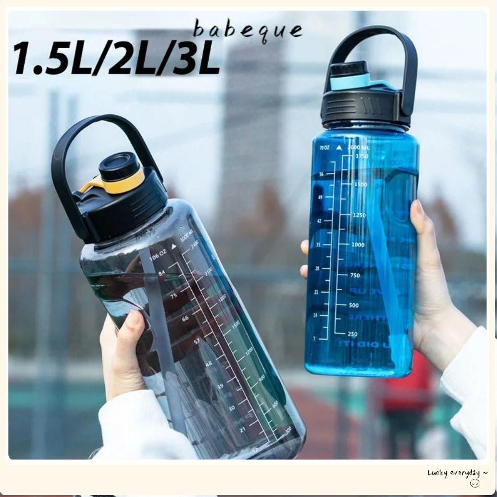 BABEQUE ขวดน้ํากีฬาความจุขนาดใหญ่ 1.5 ลิตร/2 ลิตร/3 ลิตรขวดเครื่องดื่มน้ําหนักเบาพร้อมเครื่องหมายเวลาเหยือกน้ํารั่วซึม
