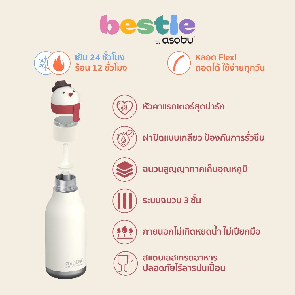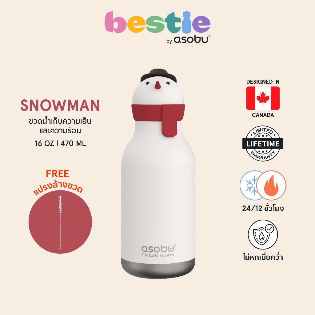 Asobu Bestie ลายมนุษย์หิมะ ขวดน้ำสูญญากาศคาแรคเตอร์สุดน่ารัก ฝาซิลิโคนเปลี่ยนคาแรคเตอร์ได้ เก็บเย็น-ร้อนพร้อมหลอดดูด 47