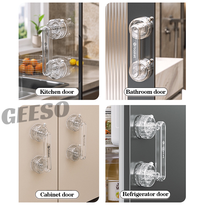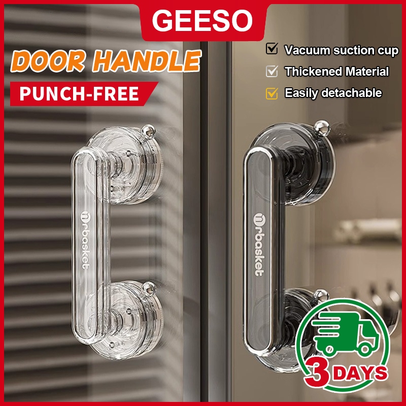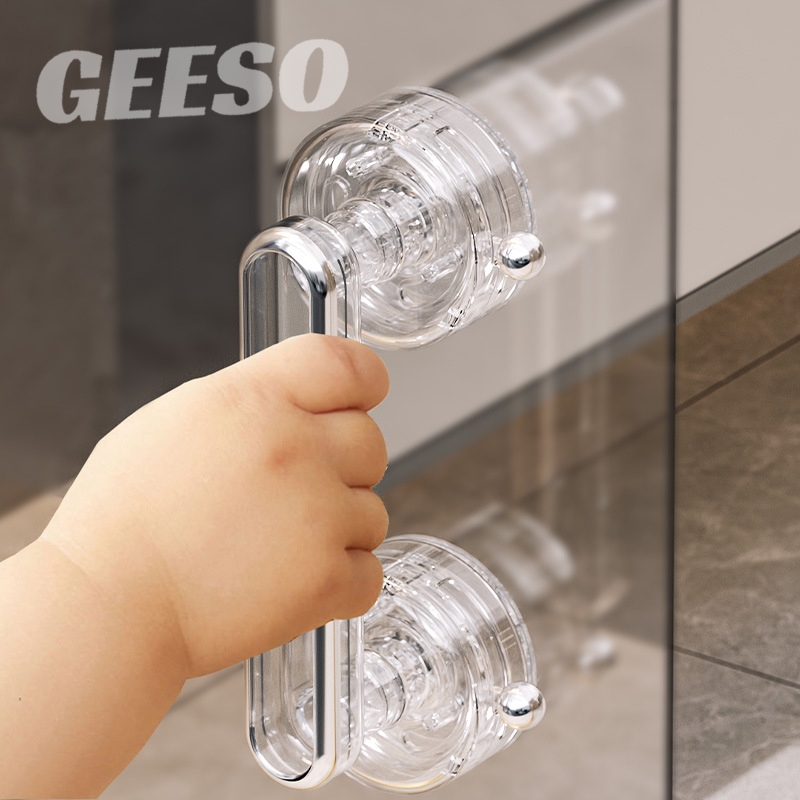GEESO มือจับประตูถ้วยดูด, ที่จับประตูบานเลื่อนกันลื่นกันน้ํา, ที่จับประตูตู้เสื้อผ้าแบบใช้ซ้ําได้แบบพกพาที่ถอดออกได้ Suction Cup Door Handle 吸盘门把手
