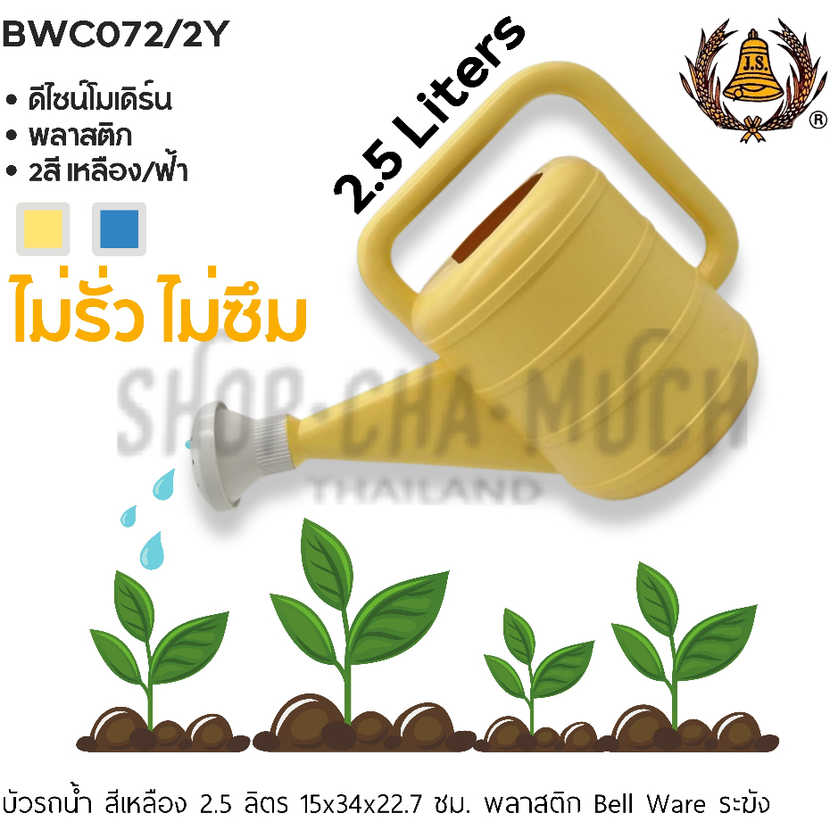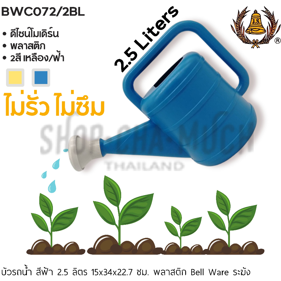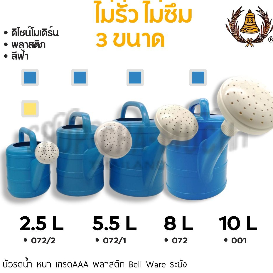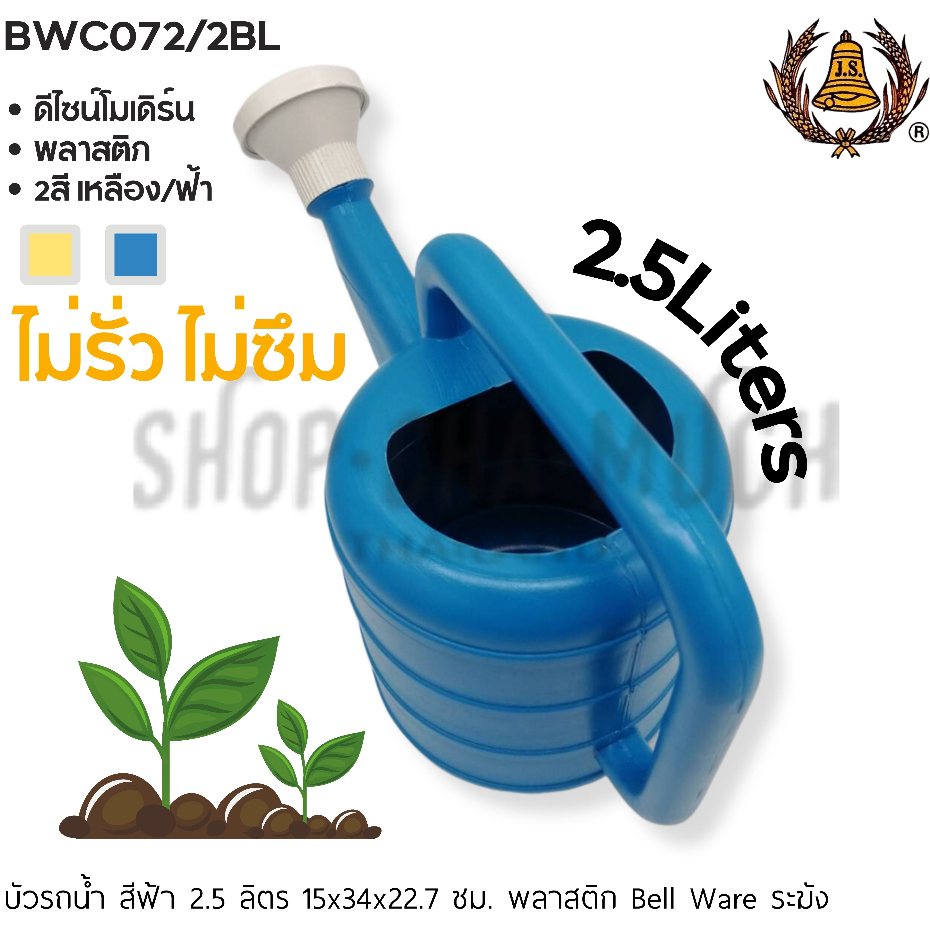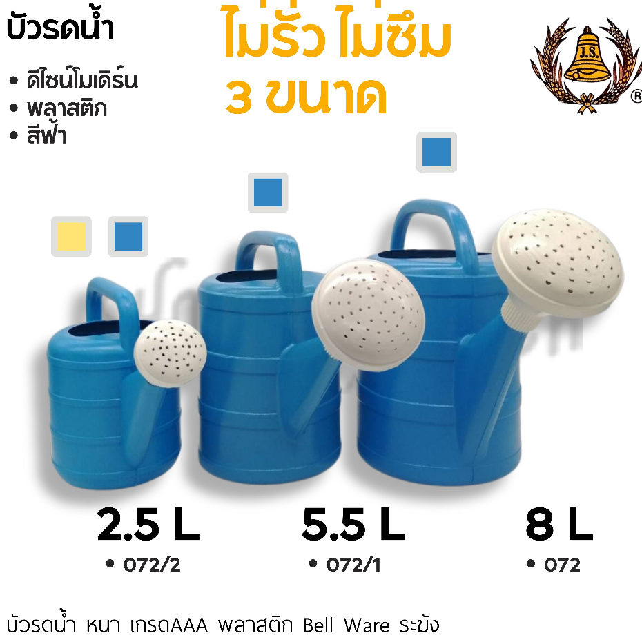 -โปรดอ่าน- บัวรดน้ำ พลาสติก ไม่รั่ว ไม่ซึ่ม Bell Ware ระฆัง 2.5/5.5/8/10 ลิตร น้ำเงิน/เหลือง – 1 ใบ