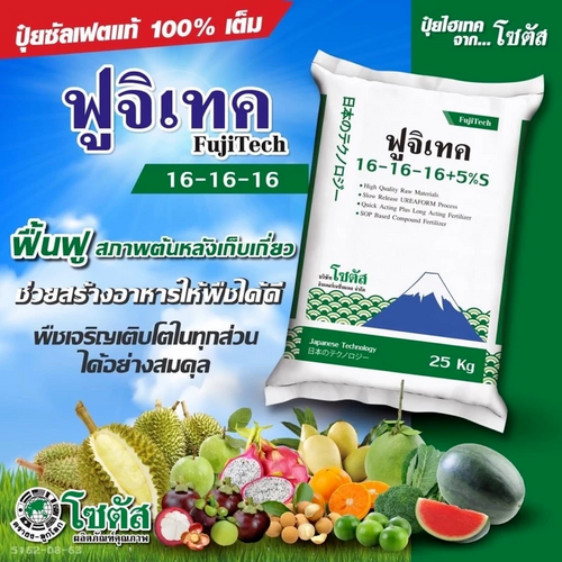 (แบ่งบรรจุ) Fujitech ฟูจิเทค 16-16-16+5% | โซตัส | ปุ๋ยซัลเฟตแท้100%เต็ม ปุ๋ยทางดิน ขนาดบรรจุ 1Kg.