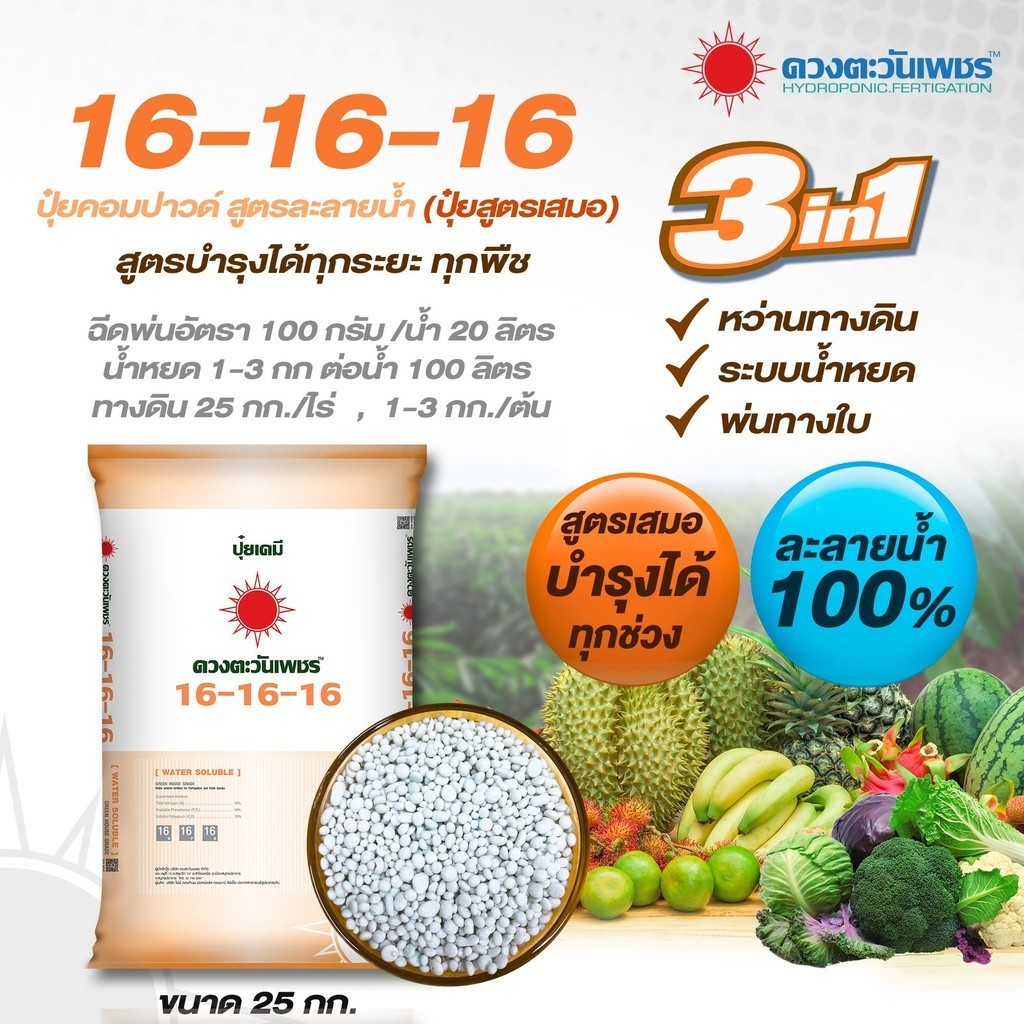 (ยกกระสอบ25kg) แม่ปุ๋ย ปุ๋ยเกล็ด 15-0-0 , 0-52-34 , 13-0-46 #ดวงตะวันเพชร