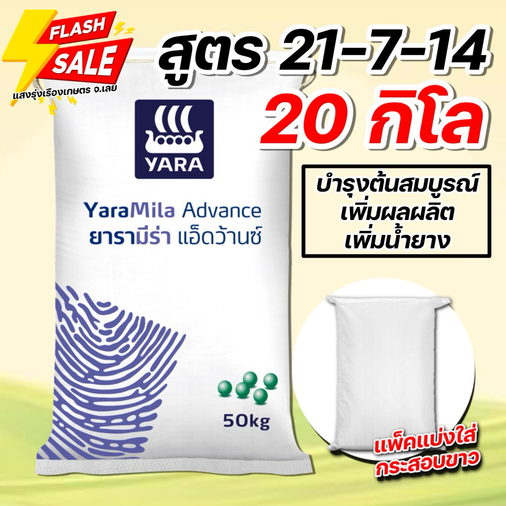 (20กิโล แบ่งขาย!)ปุ๋ยสูตร 21-7-14 ยารา บำรุงต้นสมบูรณ์ เพิ่มผลผลิต เพิ่มน้ำยาง ขนาดบรรจุ 20 กิโลกรัม