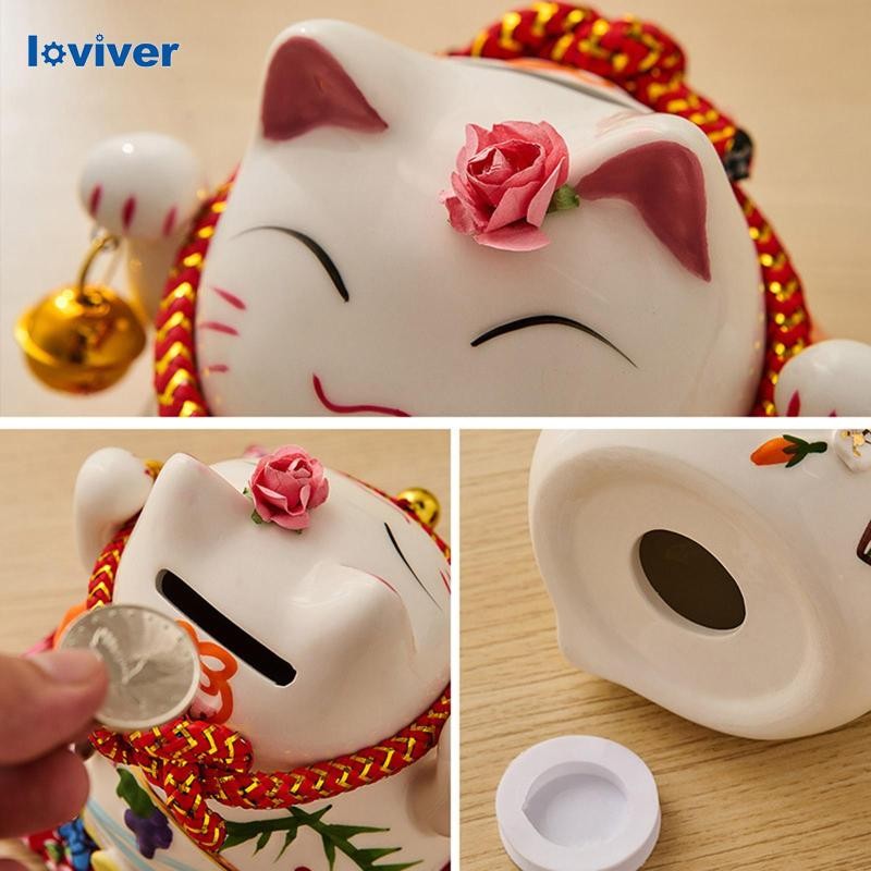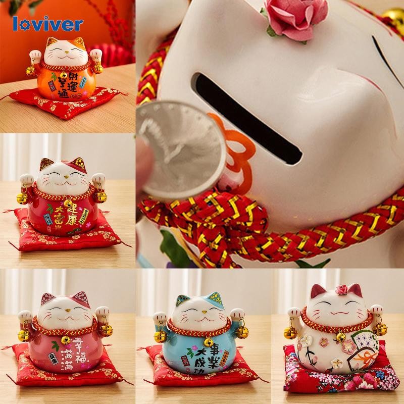 [Loviver] จีน Maneki Neko ขอให้โชคดีกระปุกออมสินแมวโชคลาภความมั่งคั่งตกแต่งบ้าน
