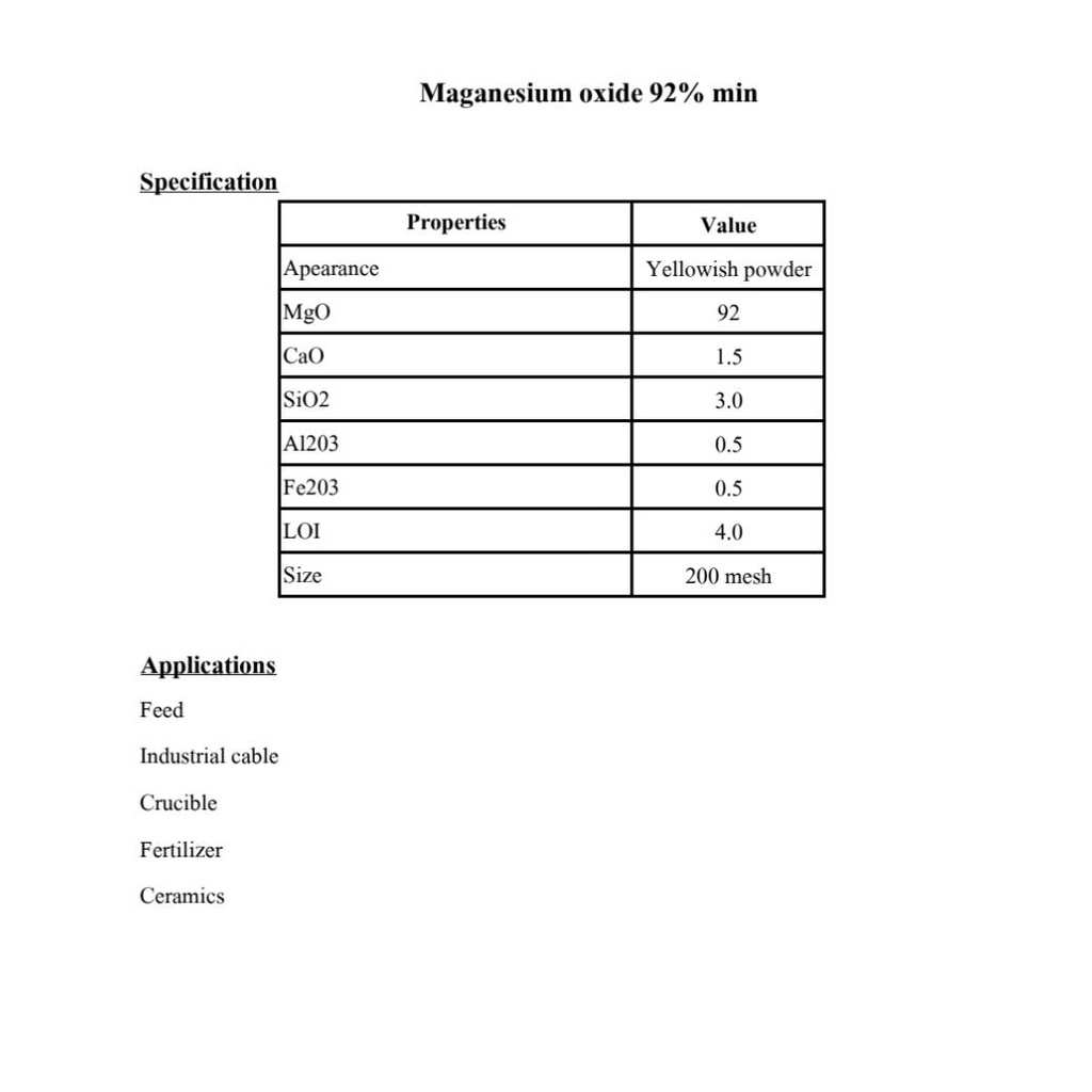 1 Kg/Bag แมกนีเซียมออกไซด์ MgO 92% Magnesium oxide ทนความร้อนได้สูง ช่วยลดปริมาณความเป็นกรดของน้ำได้ดี
