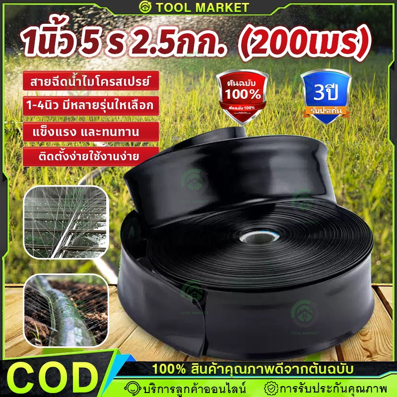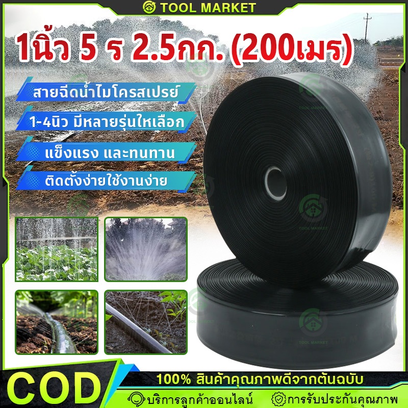 เทปน้ำพุ่ง1 นิ้ว 5 รู ยาว 200 เมตร สายส่ง น้ำพุ่ง เทปกลม พุ่ง 200เมตรเต็ม การพุ่งกระจายน้ำสม่ำเสมอ สายส่ง สายน้ำ สายยาง