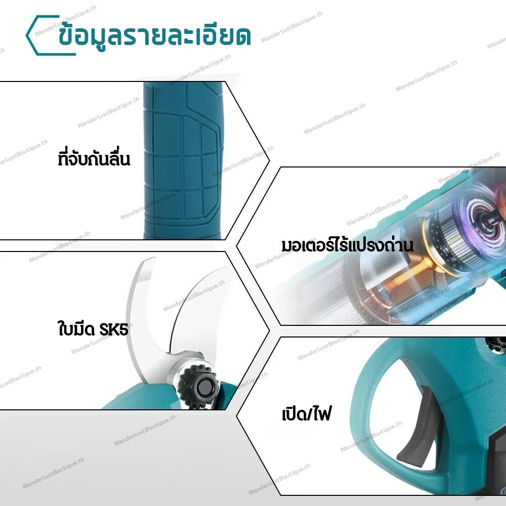 【ไม่รวมแบตเตอรี่】 กรรไกรตัดแต่งกิ่งไร้สายไร้แปรงถ่านพร้อมจอแสดงผลพลังงาน – เส้นผ่านศูนย์กลางตัด 18 มม. สําหรับต้นไม้ผลไม้ | แบตเตอรี่ ดู เข้ากันได้ (เฉพาะเครื่องมือ)