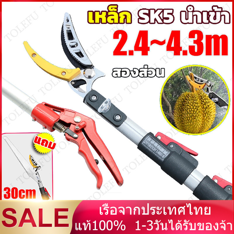 【แถมเลื่อยฟัน 30 ซม.】กรรไกรตัดกิ่ง (ยืดได้ 4.3mกรรไกรยาว) SK5 นำเข้า กรรไกรตัดผลไม้ การเก็บผลไม้ การตัดที่เร็ว