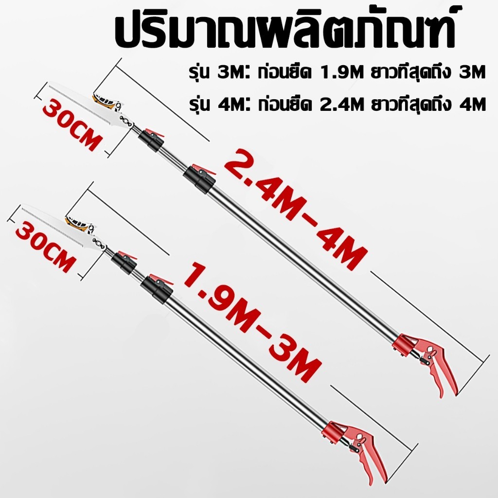 3in1 เลื่อยได้ กรรไกรตัดกิ่งไม้สูง ยืดหกถึง1/1.5/2M ด้ามจับยาว กรรไกรเก็บผลไม้ กรรไกรเก็บผลไม้ ตัดกิ่งไม้หนา 3 ซม