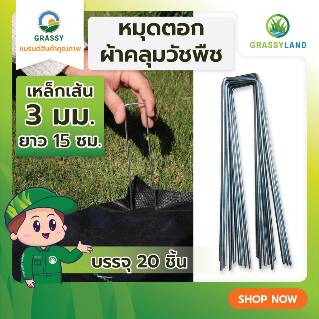 GRASSYLAND หมุดตัว U ยึดผ้าคลุมดิน บรรจุ 20 ตัว/ แพ็ค