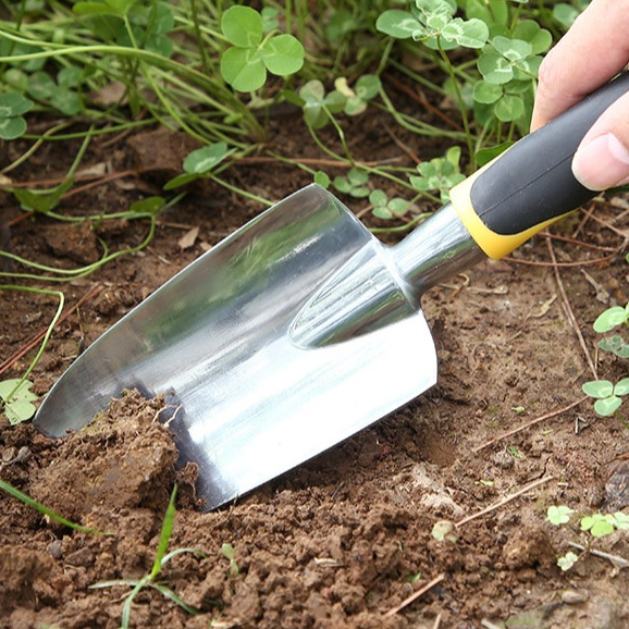 ช้อนปลูกสแตนเลส ด้ามหุ้มพลาสติก PVC อย่างดี อย่างหนา แข็งแรงทนทาน ช้อนพรวนดิน ช้อนตักดิน