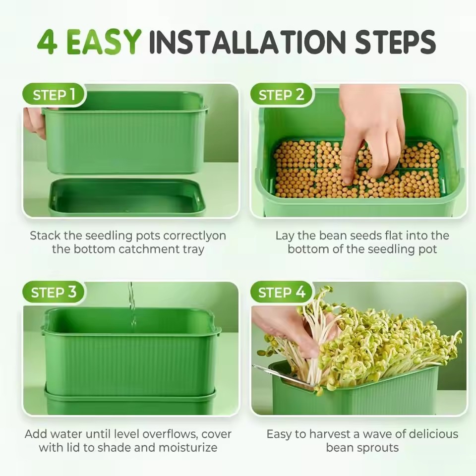 ถาดเพาะกล้าพลาสติกนํากลับมาใช้ใหม่ได้พร้อมรูระบายอากาศ 1/2/3 ชุดภาชนะงอกทําสวนสําหรับพืชในร่ม, ชุดปลูกถั่วงอกแมว