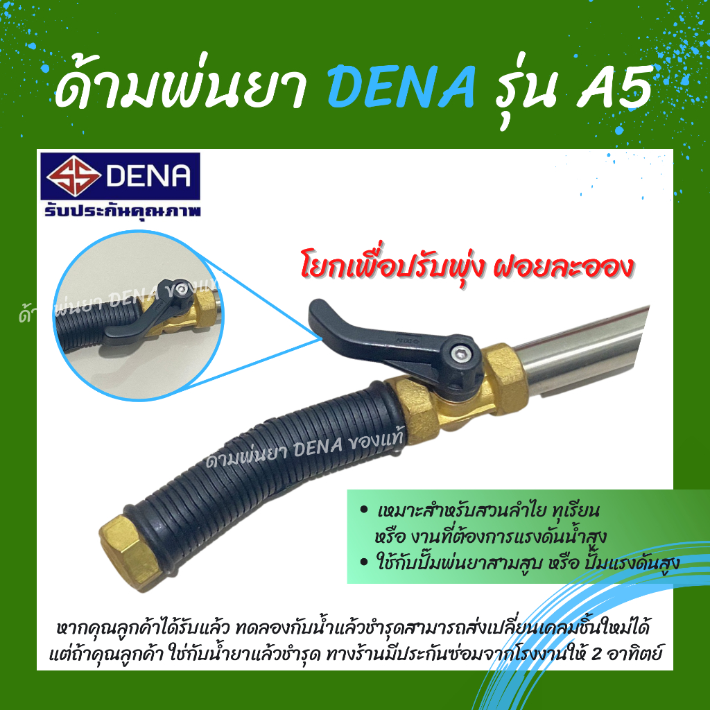 ด้ามพ่นยา DENA ของแท้ รุ่น A5 ก้านพ่นยา หัวฉีดเทอโบ ด้ามพ่นยาดีน่า สามารถโยกเพื่อปรับพุ่งแรงได้ ความยาว 35.5 CM. สินค้าพ