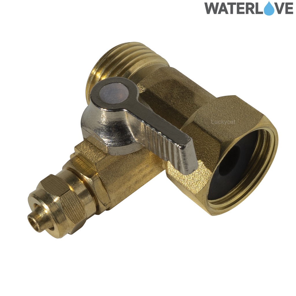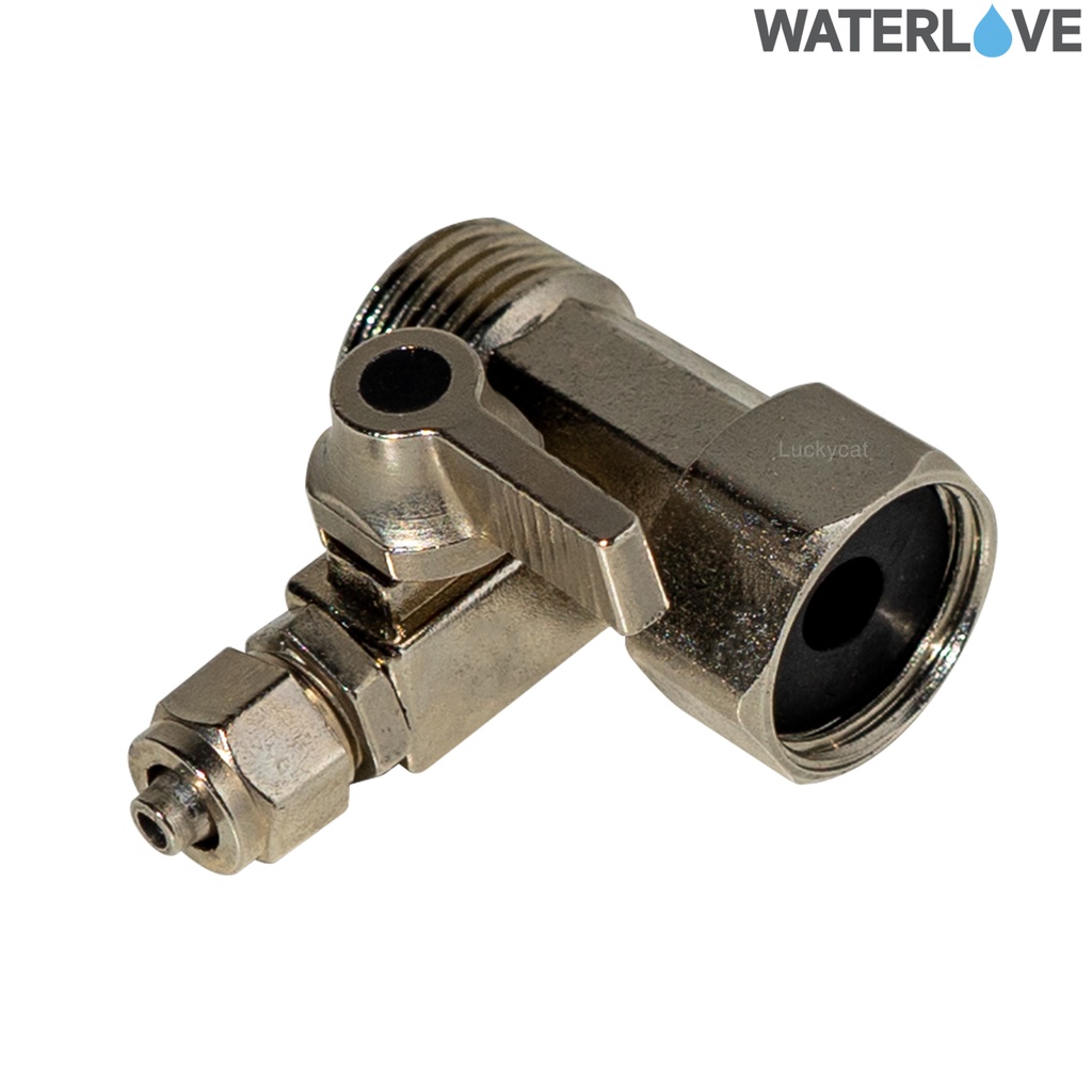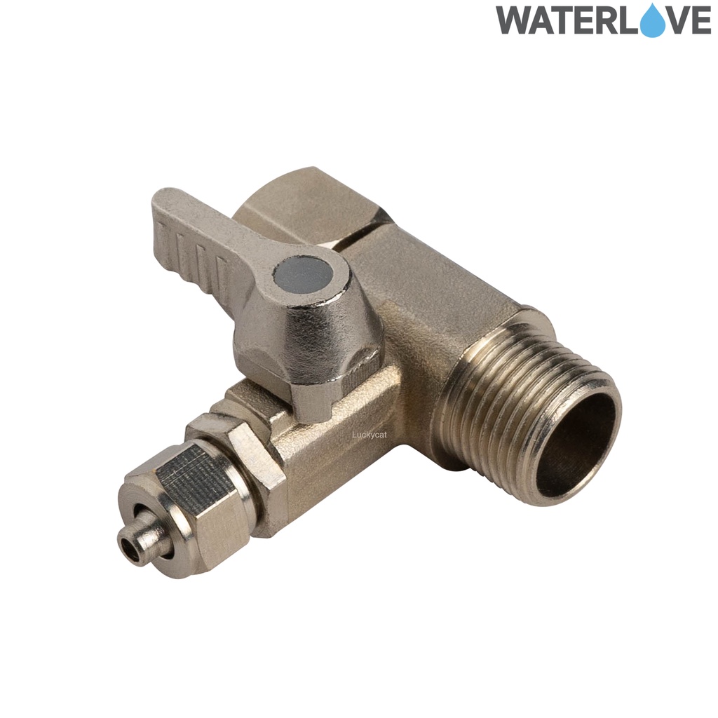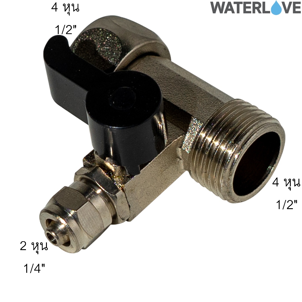 บอลวาล์ว 3 ทาง ขนาดเกลียว 4 หุน 1/2 นิ้วและเกลียว 3 หุน ช่องต่อสาย PE 2 หุน 1/4 นิ้ว