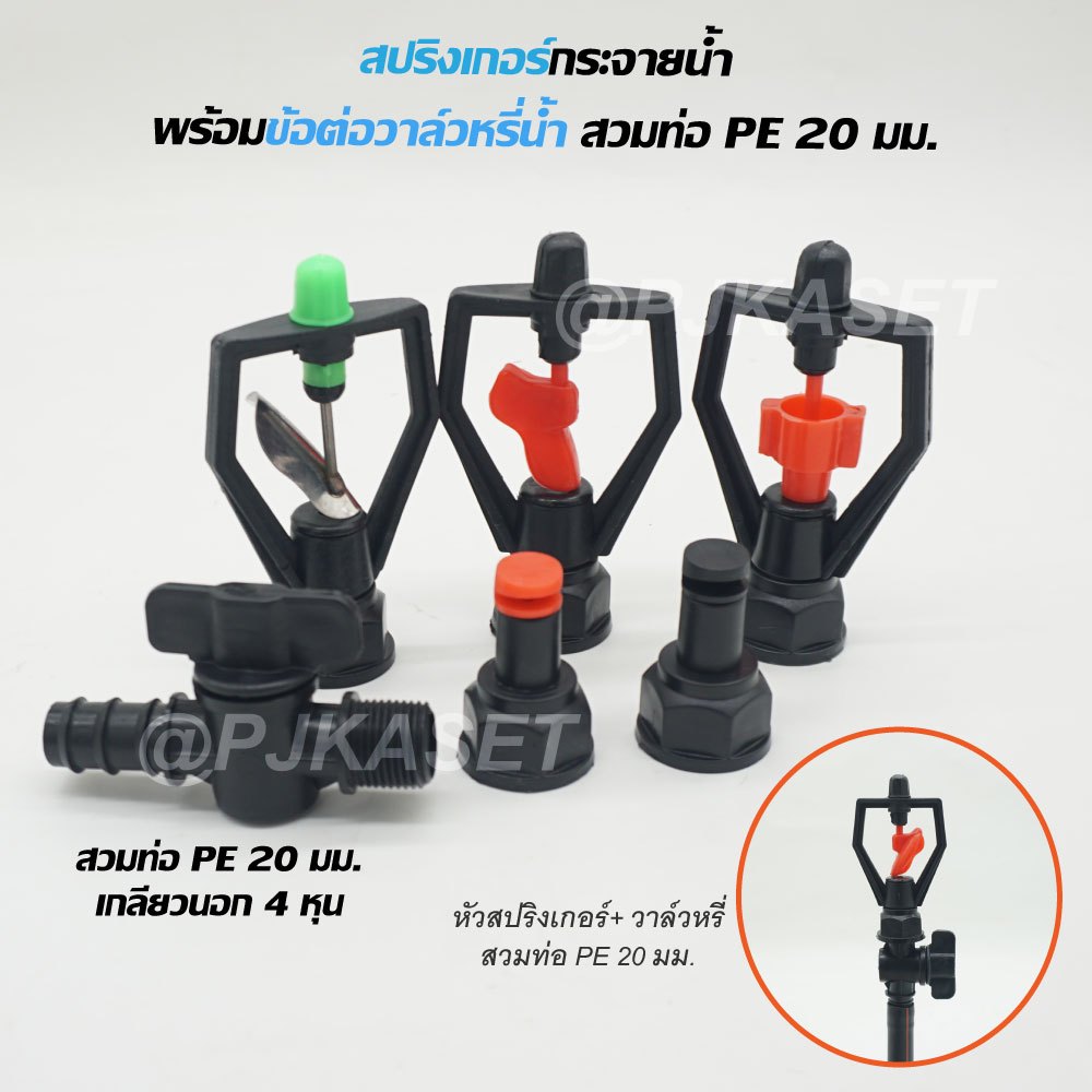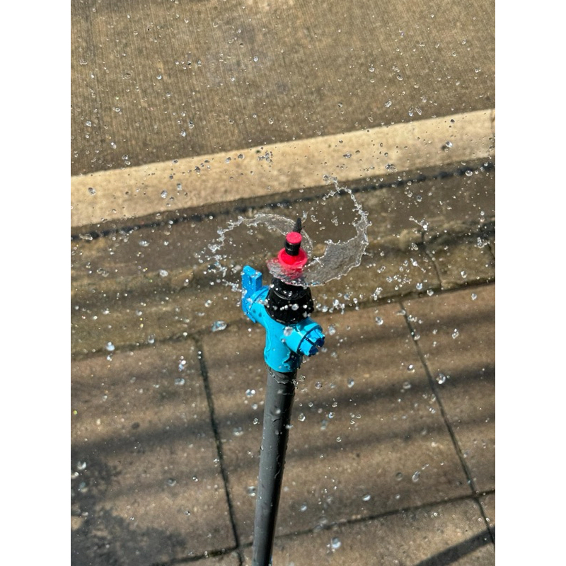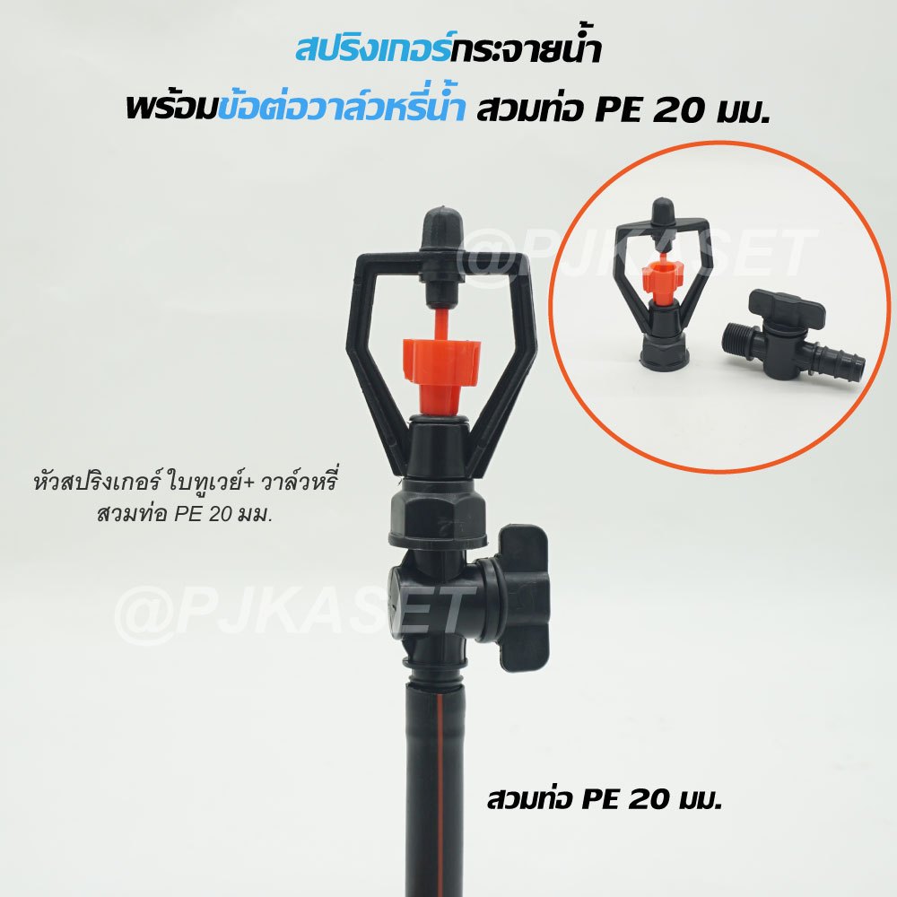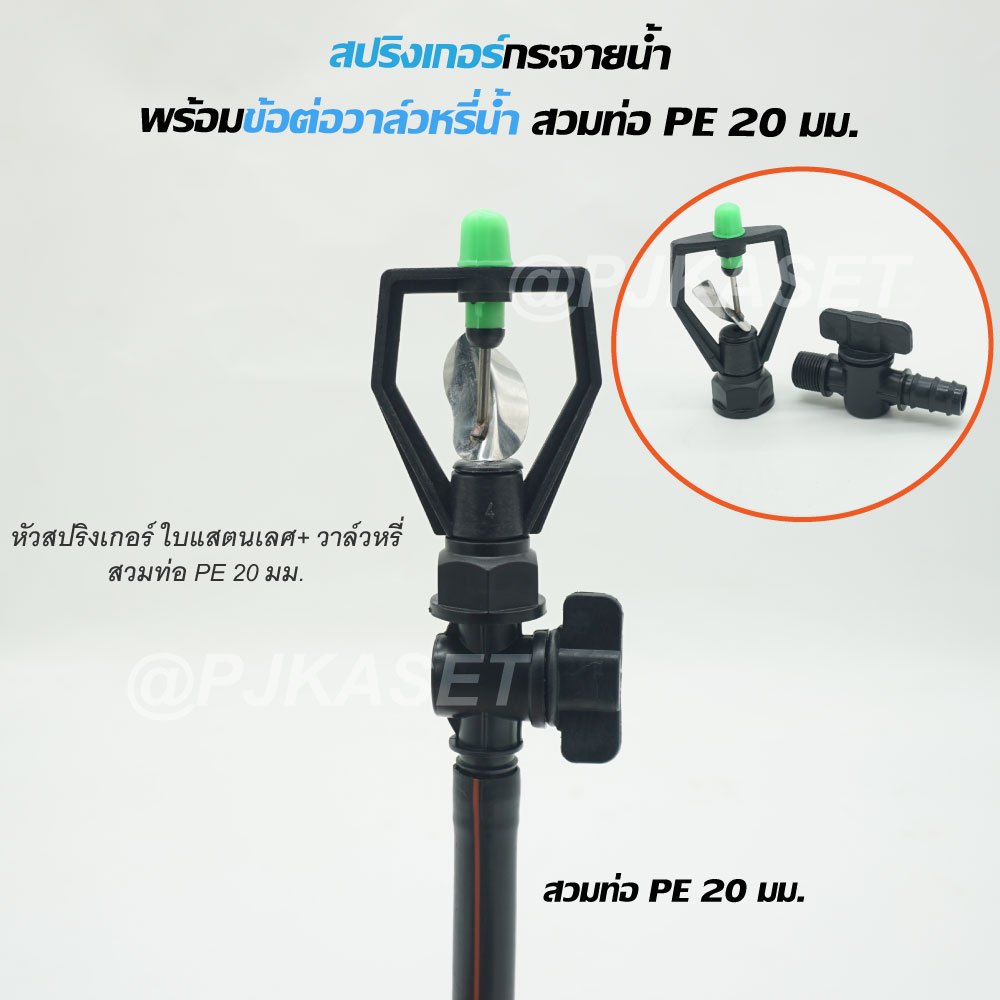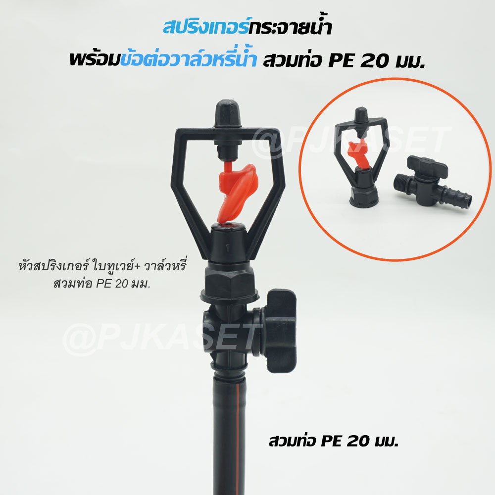 สปริงเกอร์รดน้ำ สปริงเกอร์ กระจายน้ำ 180 องศา ใบหูช้าง ใบทูเวย์ ใบสแตนเลส พร้อมวาล์วหรี่สวมท่อ PE 20 มม. รดน้ำต้นไม้