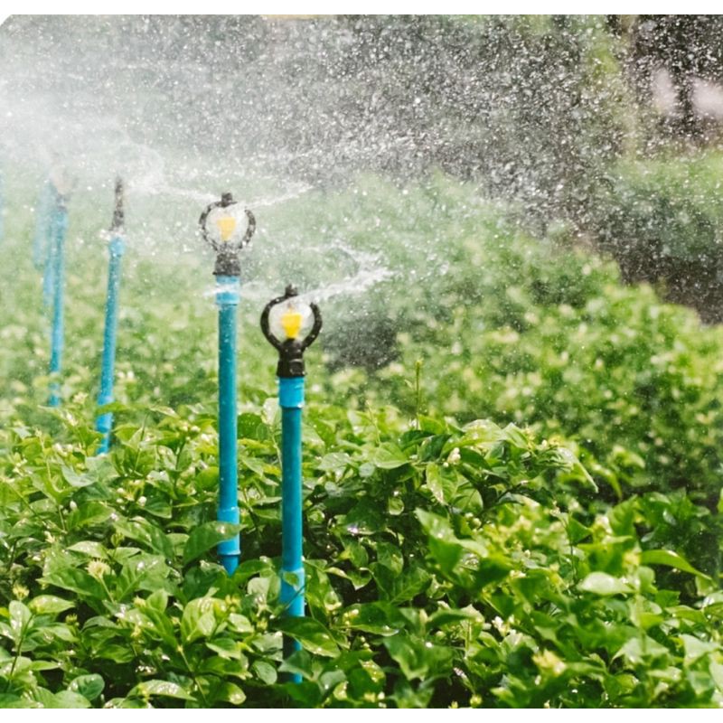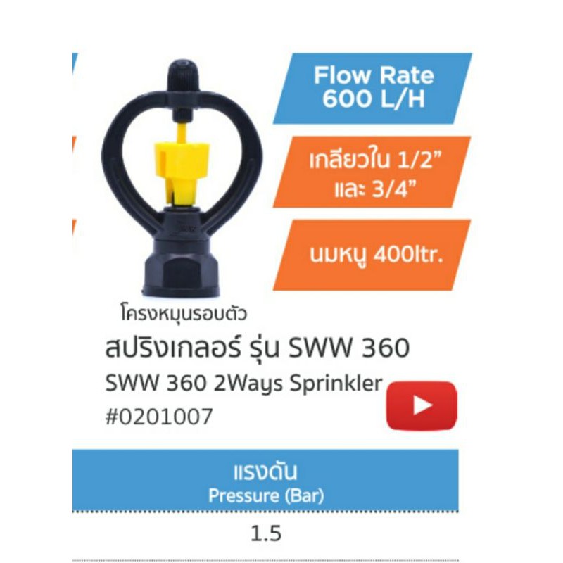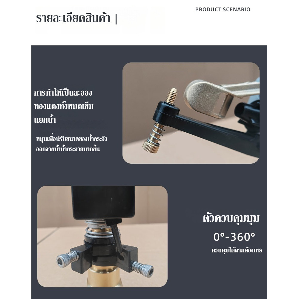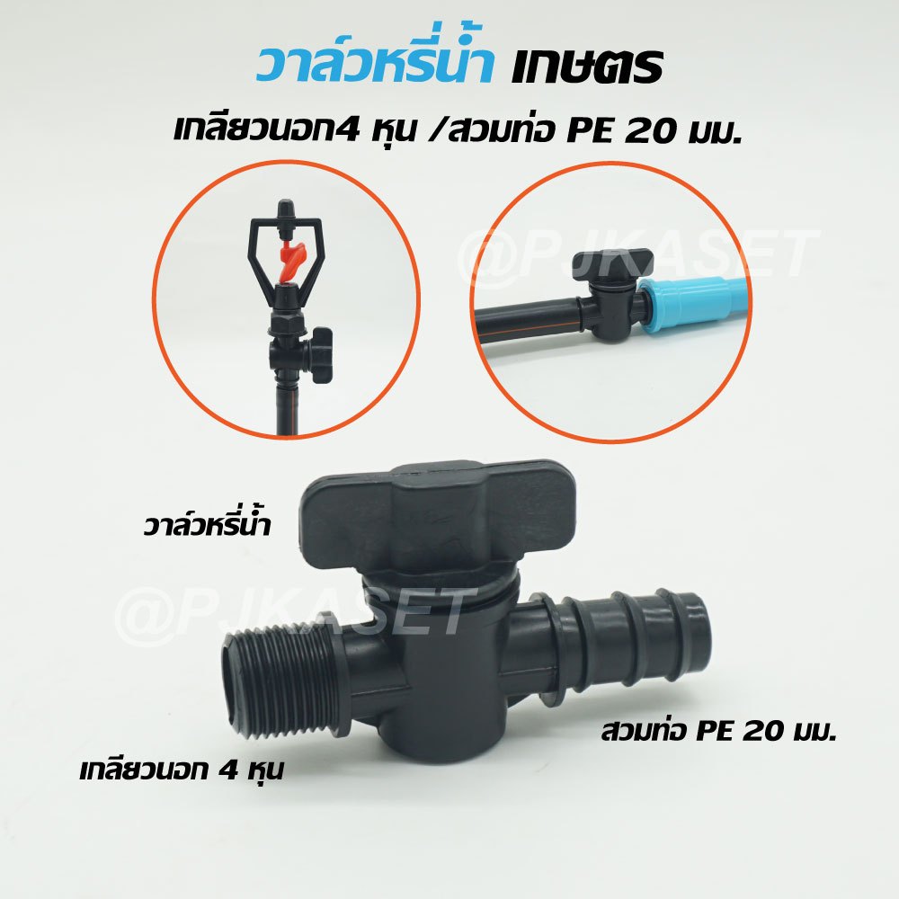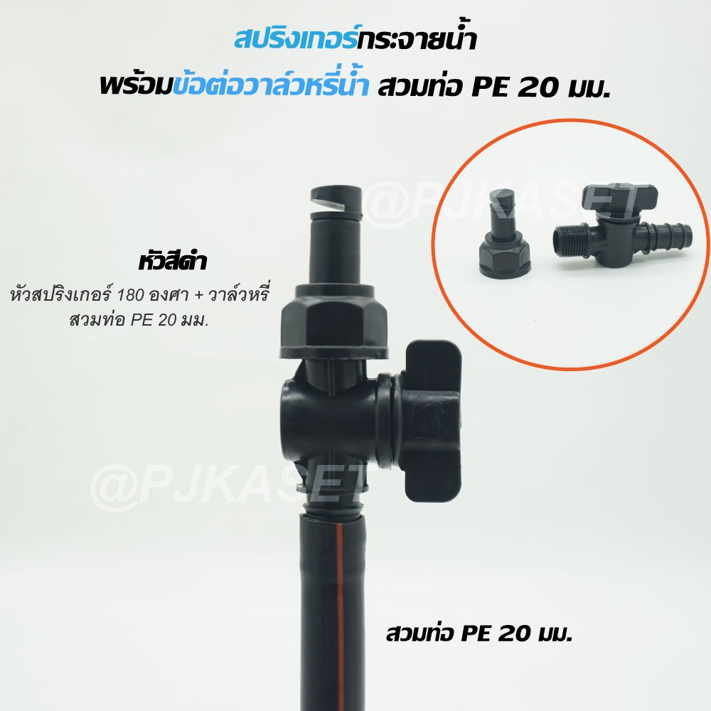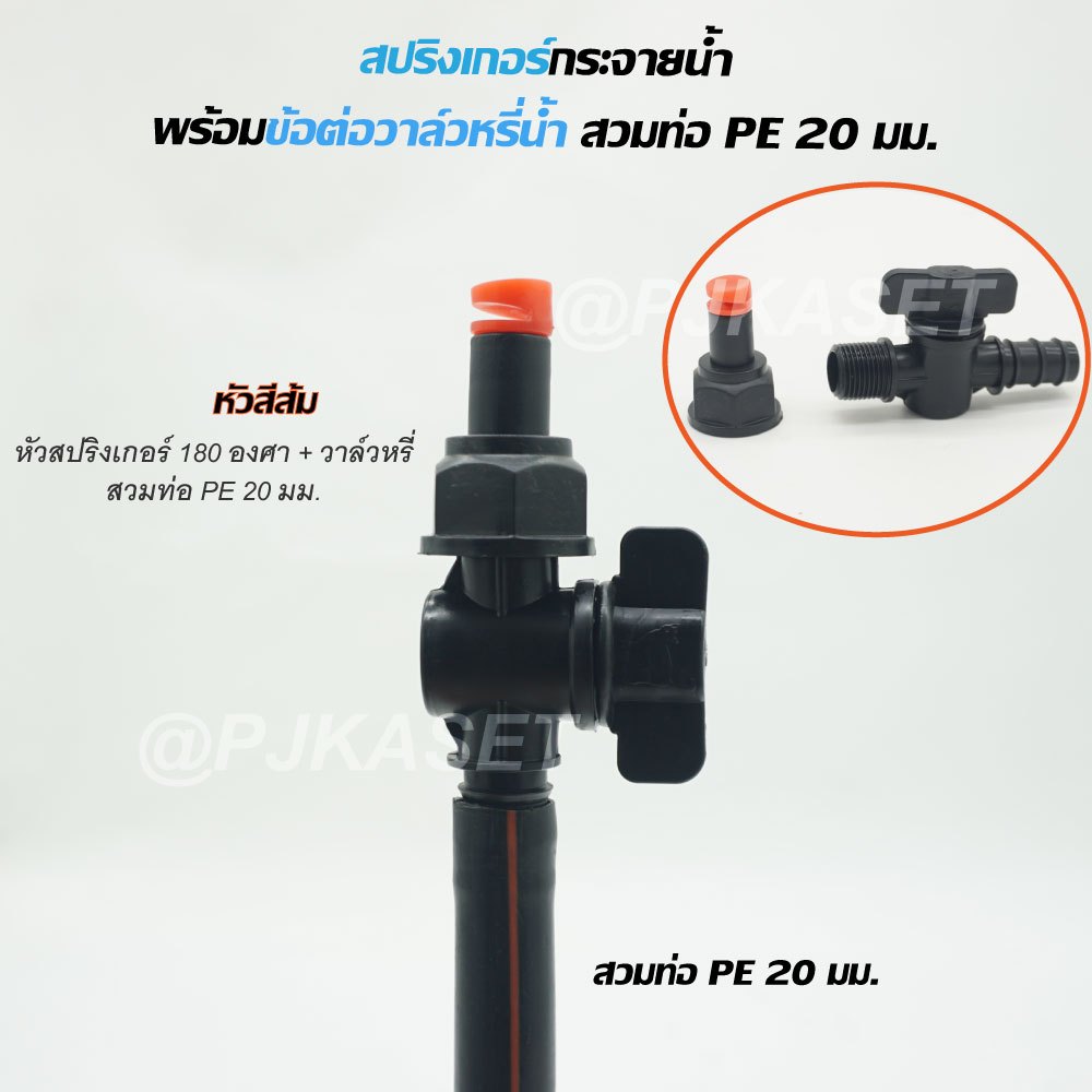 สปริงเกอร์รดน้ำ สปริงเกอร์ กระจายน้ำ 180 องศา ใบหูช้าง ใบทูเวย์ ใบสแตนเลส พร้อมวาล์วหรี่สวมท่อ PE 20 มม. รดน้ำต้นไม้
