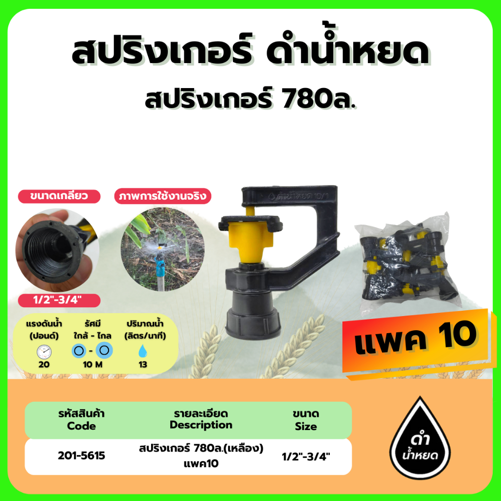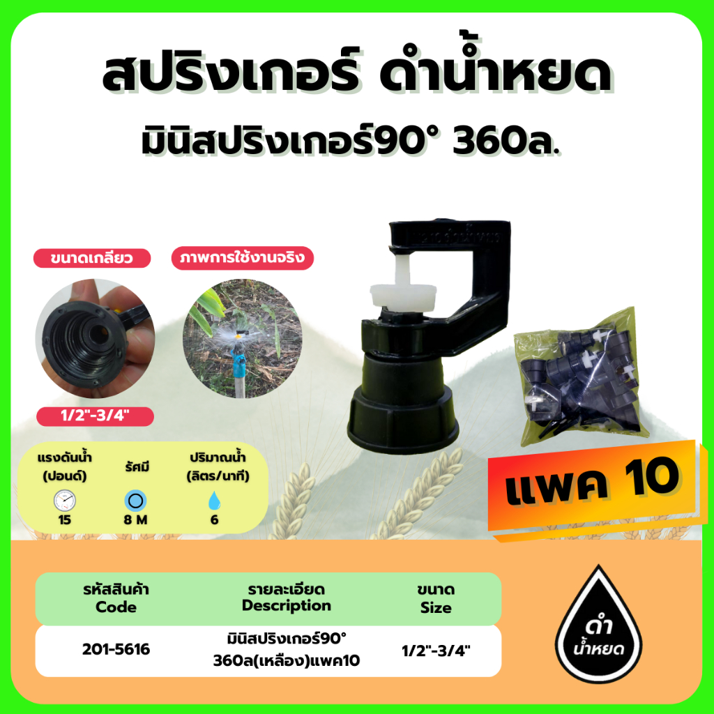 สปริงเกอร์ 780ล มินิสปริงเกอร์90° 360ล (เหลือง)(แพค10) ขนาด 1/2″-3/4″ ดำน้ำหยด