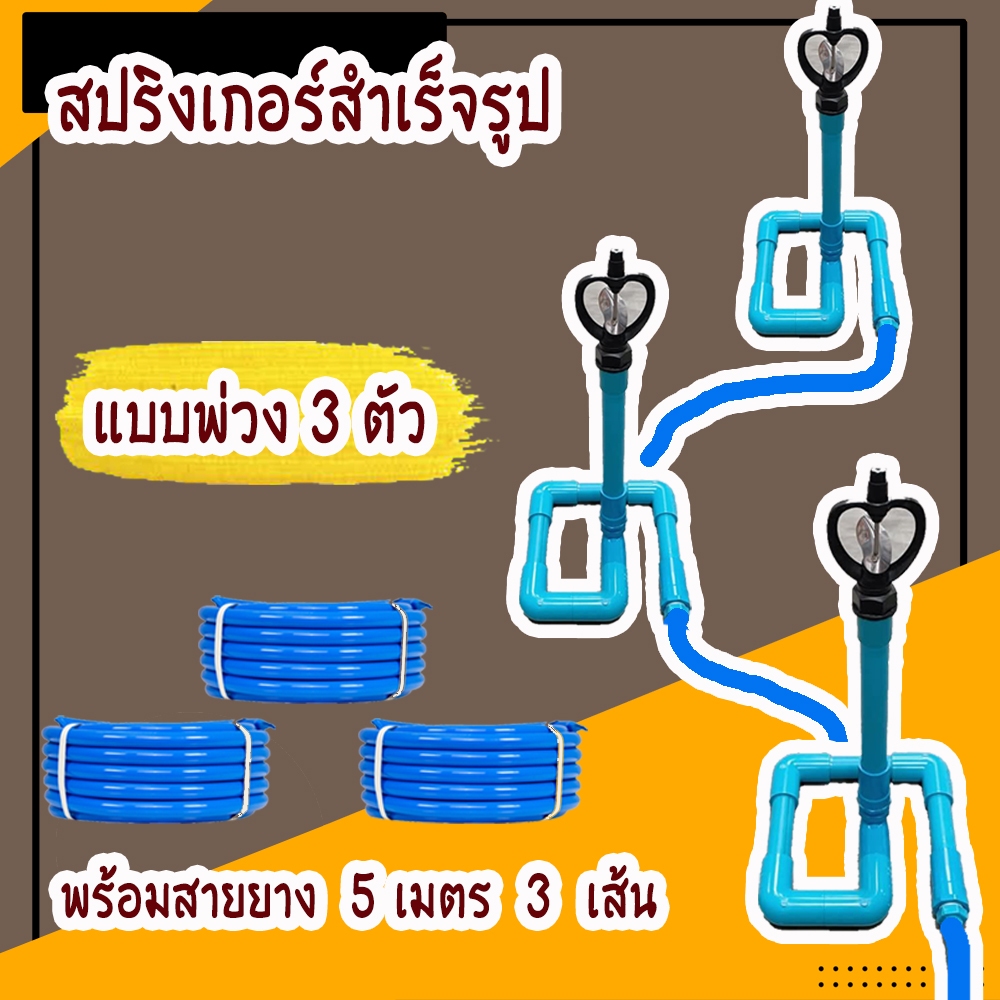 สปริงเกอร์สำเร็จรูป พร้อมสายยาง 4 หุน 5 เมตร พร้อมใช้งานใช้รดน้ำต้นไม้ ให้น้ำสนามหญ้า คายร้อน ลดฝุ่น