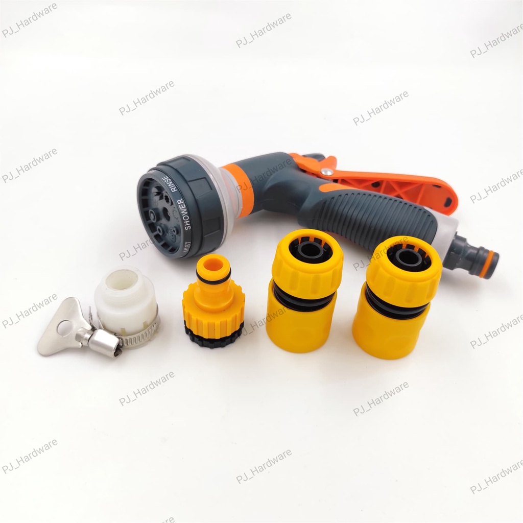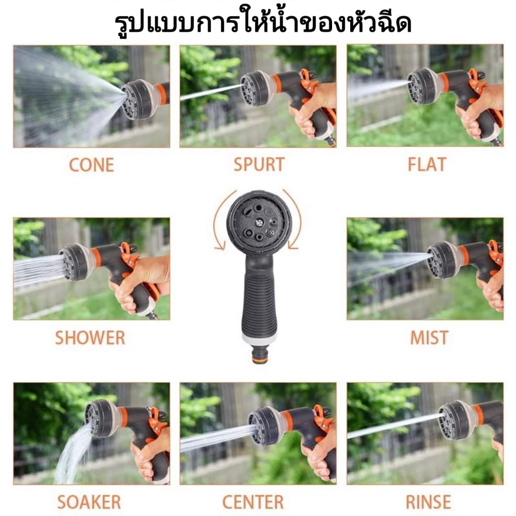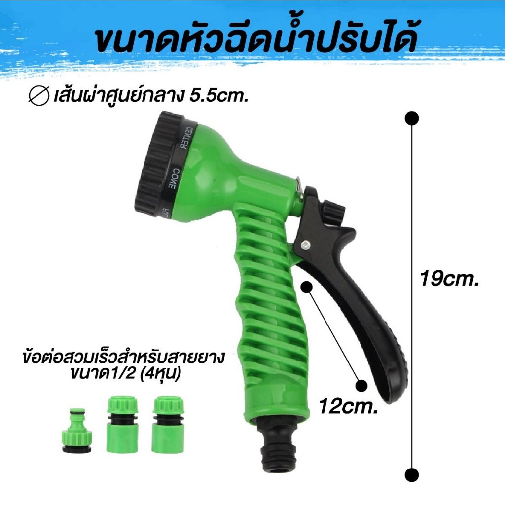หัวฉีดน้ำสวมเร็ว ปืนฉีดน้ำ ที่ฉีดน้ำ พร้อมสายยาง 1/2″(4หุน) ข้อต่อสวมเร็ว ปรับได้ 8 รูปแบบ ล้างรถ พร้อมส่ง