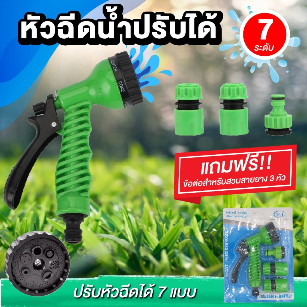 หัวฉีดน้ำ ที่ฉีดน้ำ ปรับรูปแบบน้ำได้ 7 แบบ ปืนฉีดน้ำล้างรถ รดน้ำต้นไม้ วัสดุมีคุณภาพแข็งแรง ทนทาน