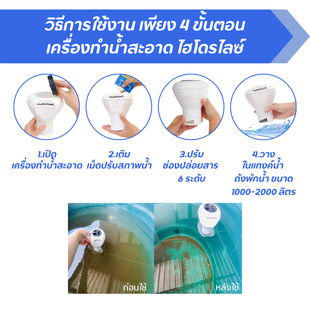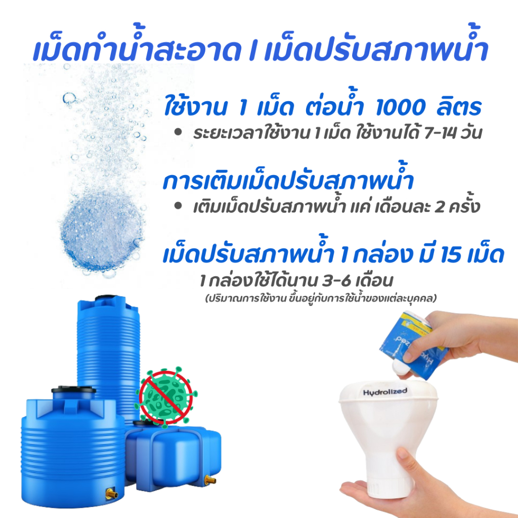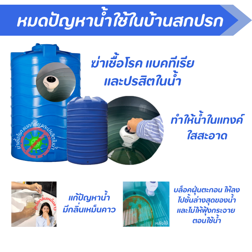 เครื่องฆ่าเชื้อโรค สำหรับแทงค์น้ำ (HTUP-002) ถังเก็บน้ำ ขนาด 1000-2000 ลิตร ไม่ต้องล้างถังเก็บน้ำ