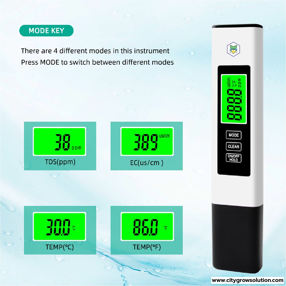เครื่องวัดคุณภาพน้ำ 3in1 TDS EC Temp Meter เครื่องวัดค่าน้ำ – เครื่องวัดความเข้มปุ๋ย TDS Meter จอมีไฟ LCD