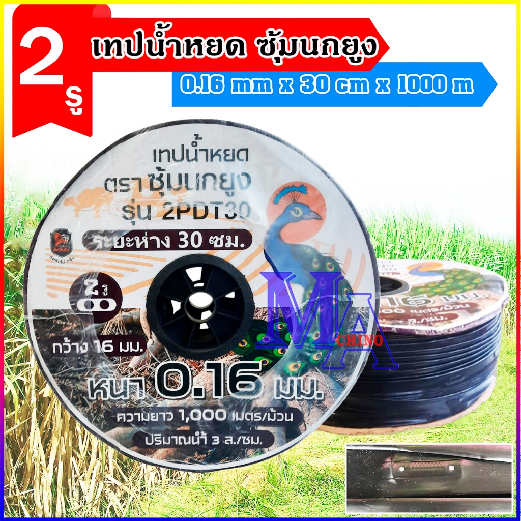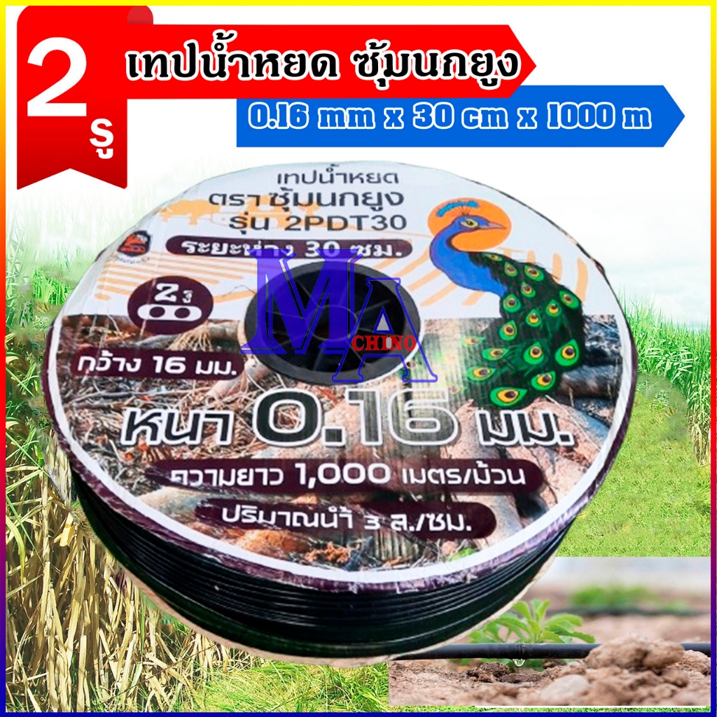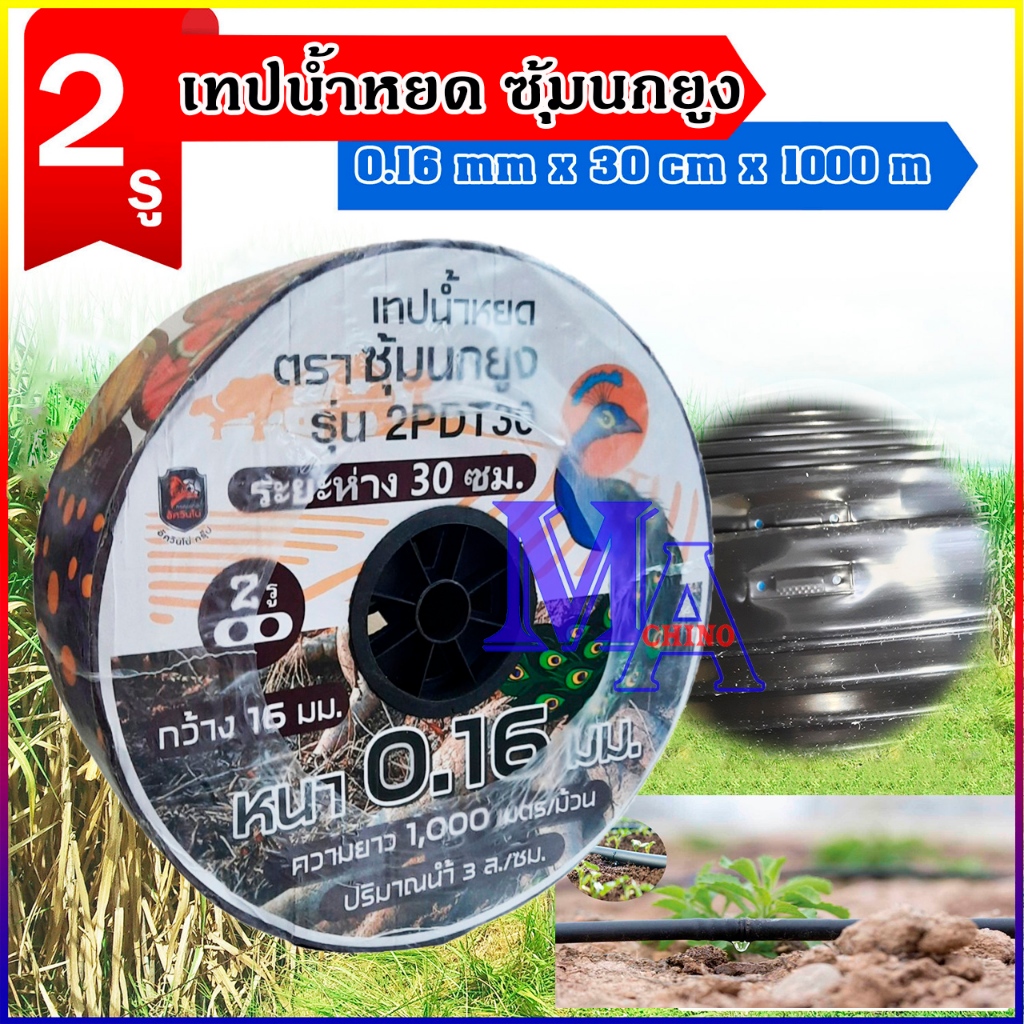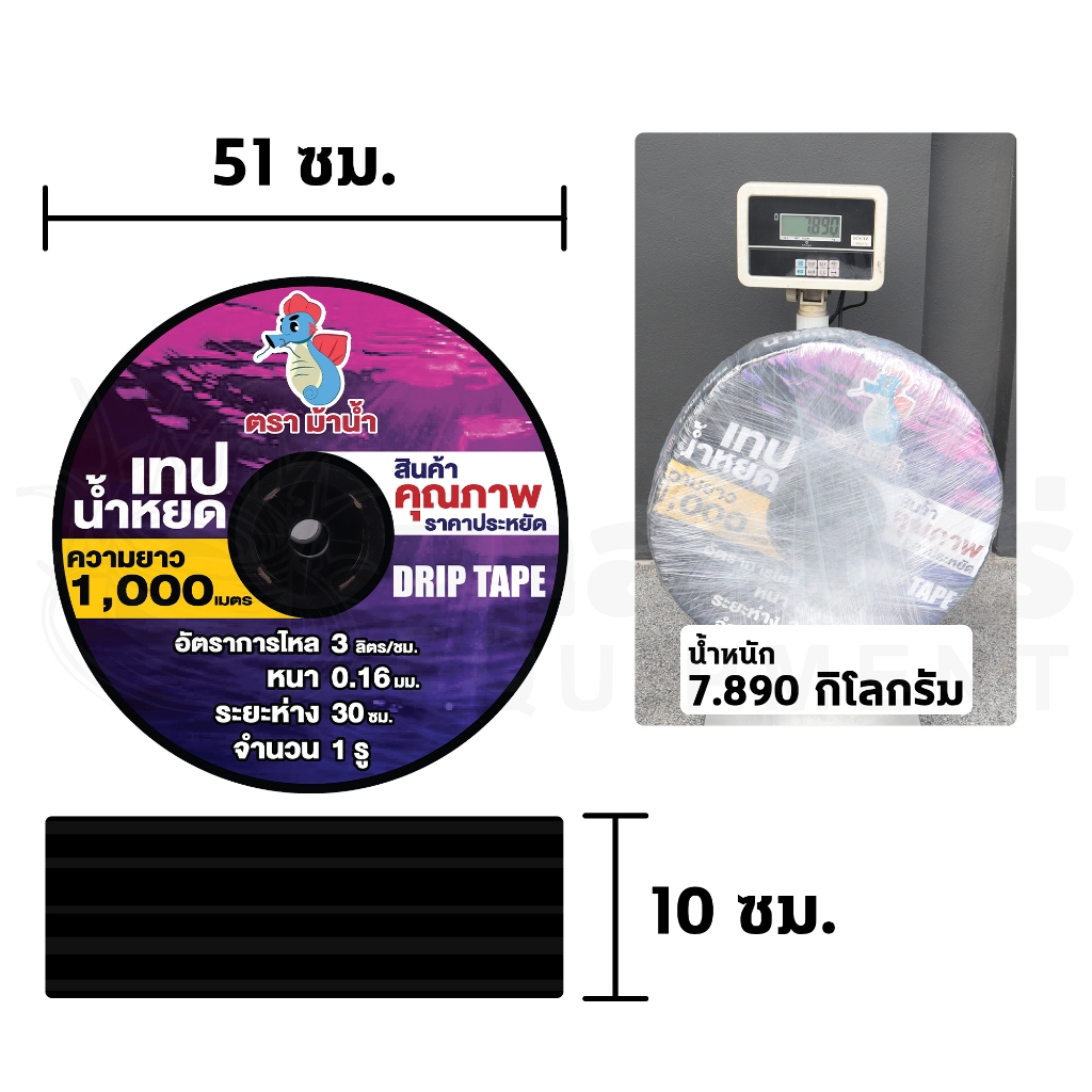 เทปน้ำหยด ตราม้าน้ำ ความหนา 0.16 มม. ระยะห่างรู 10,20,30 ซม. 1รู ความยาว 1000 เมตรเต็ม ประกัน 7 วัน