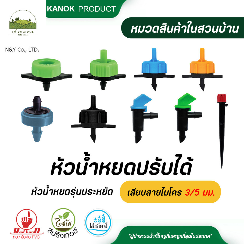 ไชโย หัวน้ำหยดปรับได้ หัวน้ำหยดขาปัก หัวน้ำหยดรุ่นประหยัด หัวน้ำหยดชดเชยแรงดัน แพ็ค10ชิ้น เสียบสายไมโคร 3/5 มม.