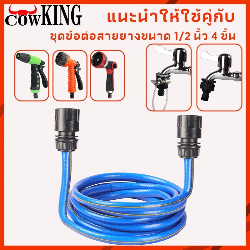COW KING ชุดสายยางรดน้ำ 4หุน ชุดล้างรถ รดน้ำต้นไม้ ครบเช็ท หัวฉีดแรงดัน รดน้ำผัก เเถมหัวฉีดเเละอุปกรณ์ติดตั้งใช้งาน