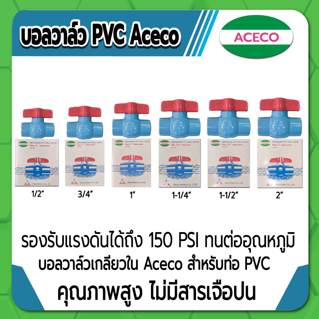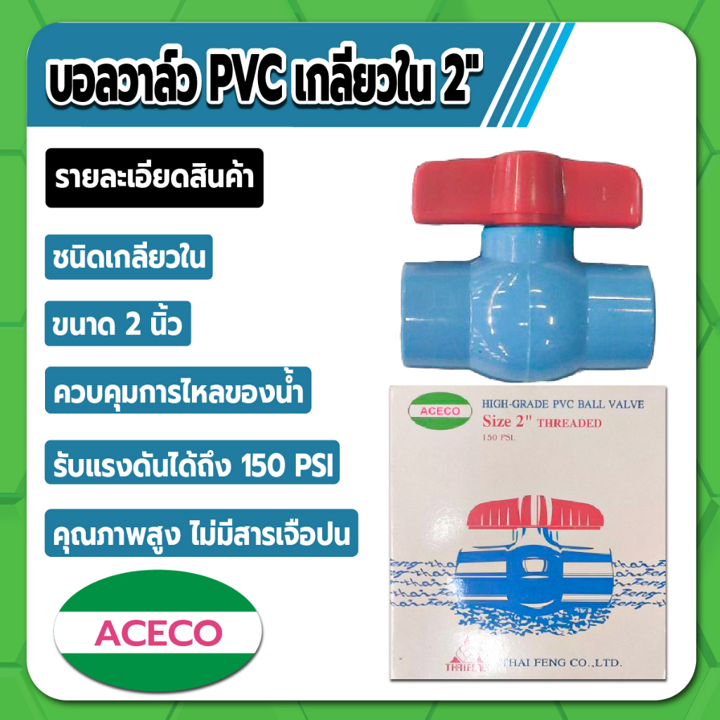 Aceco บอลวาล์ว PVC แบบเกลียวใน บอลวาล์วพีวีซี ขนาด 2″ คุณภาพสูง ไม่มีสารเจือปน