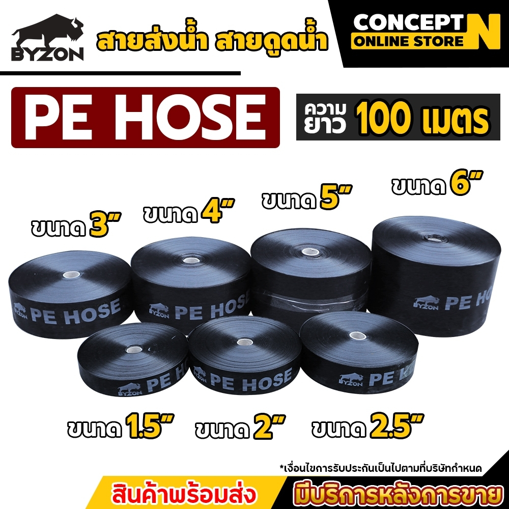BYZON สายส่งน้ำ PE 1.5-6 นิ้ว ยาว 100 เมตร สายพีอี ท่อส่งน้ำ ท่อพีอี ท่อpe สายดูดน้ำ สายสำหรับส่งน้ำ ส่งน้ำสำหรับทำเกษตร