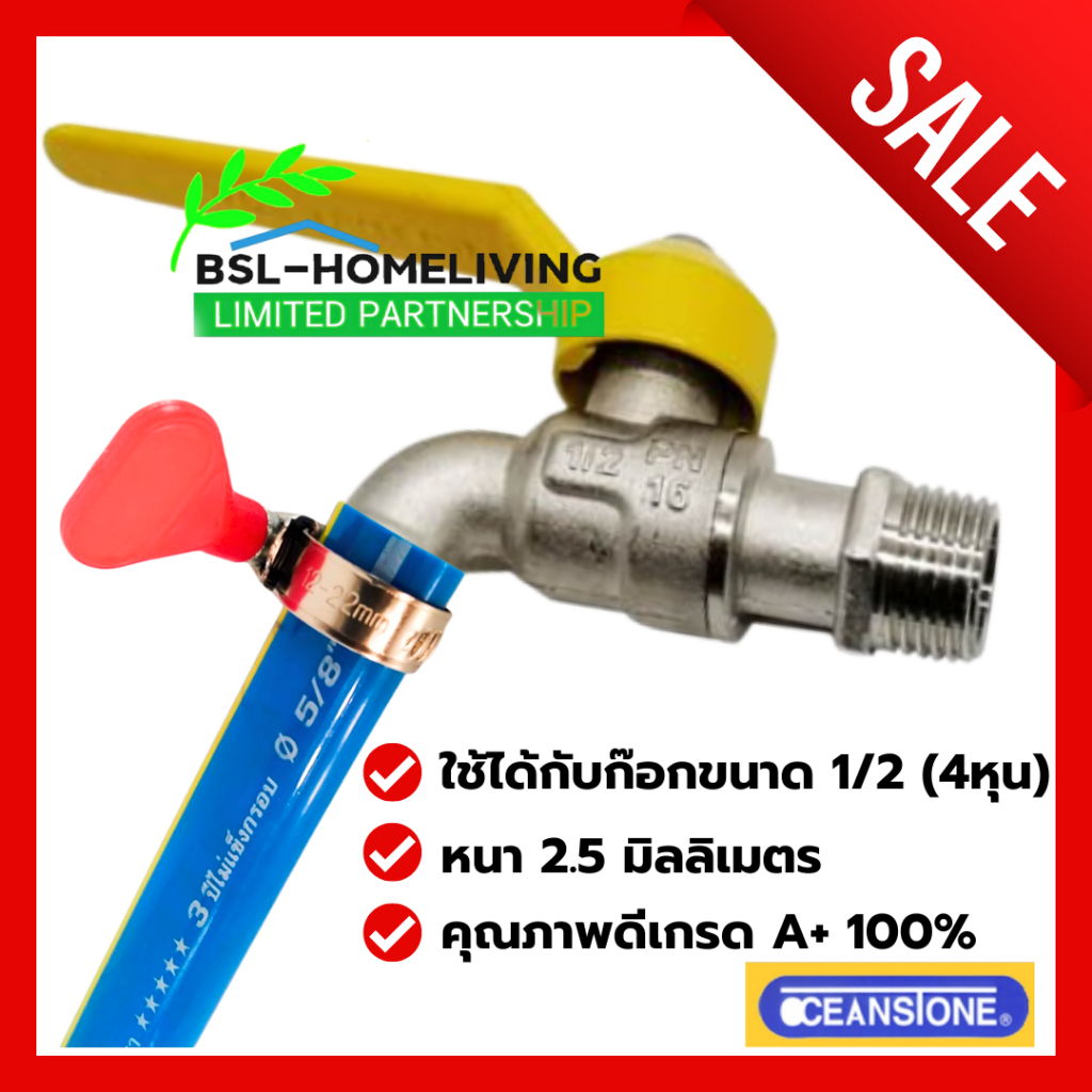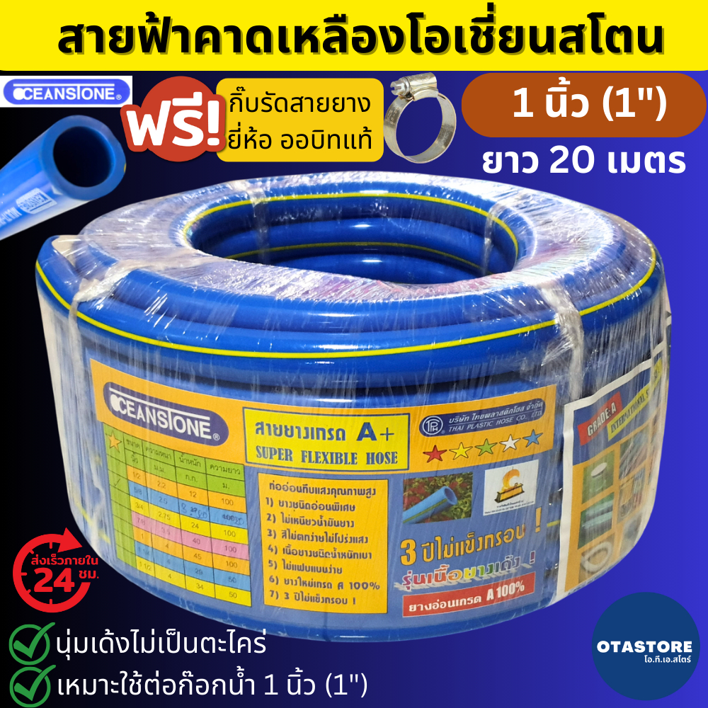 OCEANSTONE (สายยางฟ้าคาดเหลือง) สายยาง 5 หุน (5/8) เกรด A+ แท้ 100 % แถมฟรี กิ๊บรัด 1 อัน (A092)