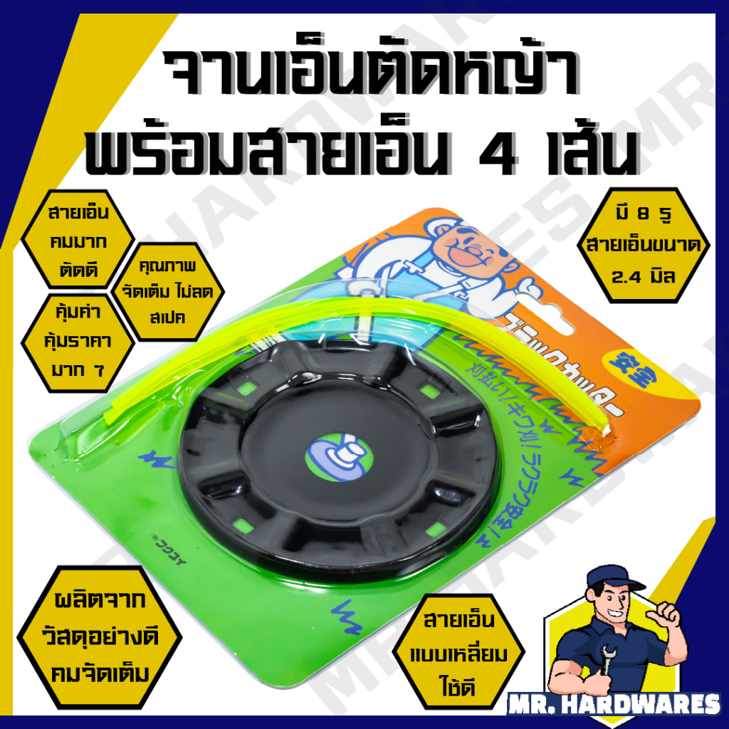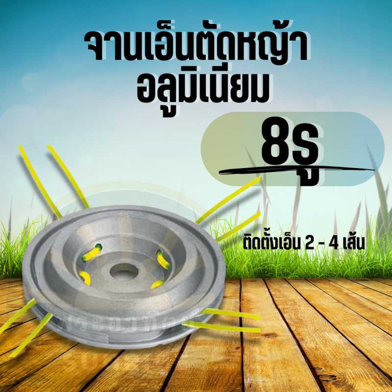 จานเอ็นอลูมิเนียม (8รู) จานเอ็น จานเอ็นตัดหญ้า พร้อมเอ็ม 4 เส้น สำหรับเครื่องตัดหญ้า