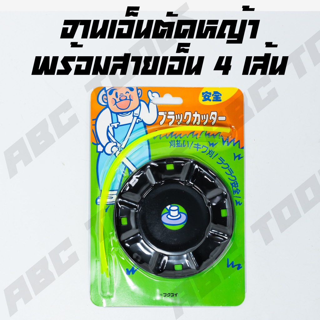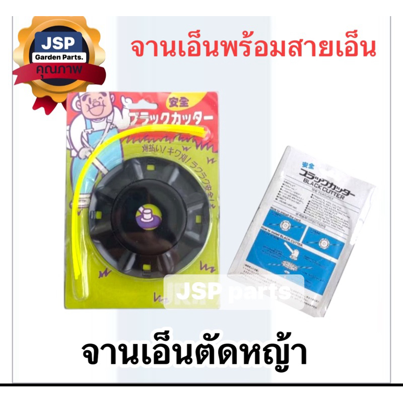 จานเอ็นตัดหญ้า สีดำ(แบบสอด) เหล็กหนา พร้อมเอ็น 4 เส้น สำหรับเครื่องตัดหญ้าไร้สาย