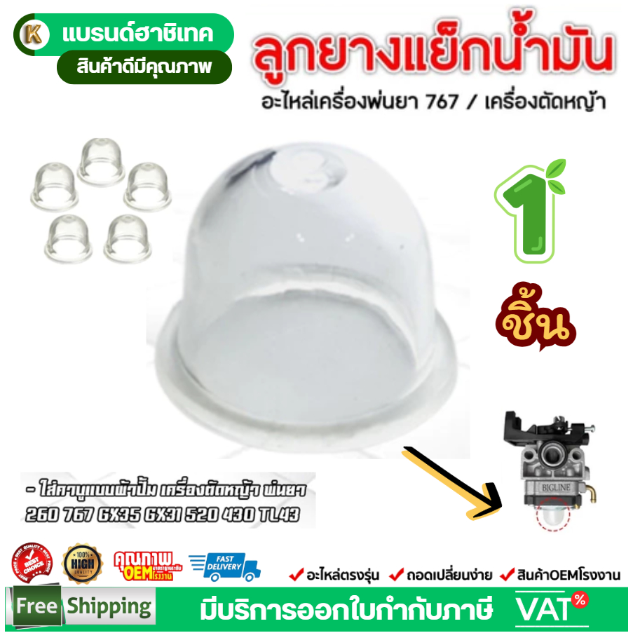 ยางกดน้ำมัน ยางแย๊ก ปุ่มใส พ่นยา ตัดหญ้า 767 GX35 260 by เจ๊เขียวค้าส่ง