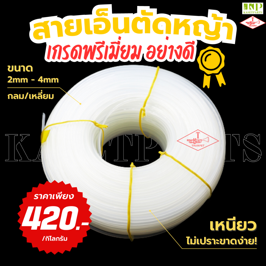 สายเอ็นตัดหญ้า 2.5/3/4 มิล เหลี่ยม/กลม ขาว ม้วนละ 1 กิโลกรัม สายเอ็นอย่างดี