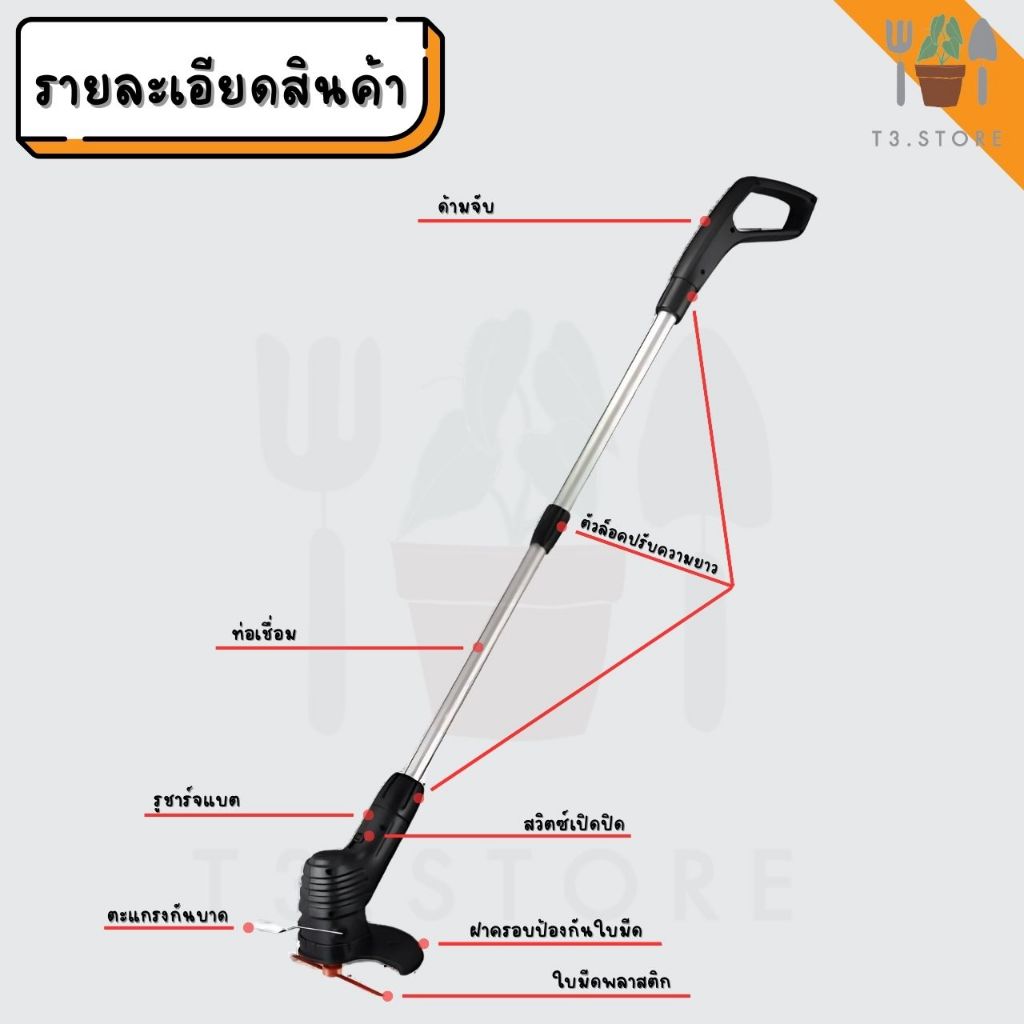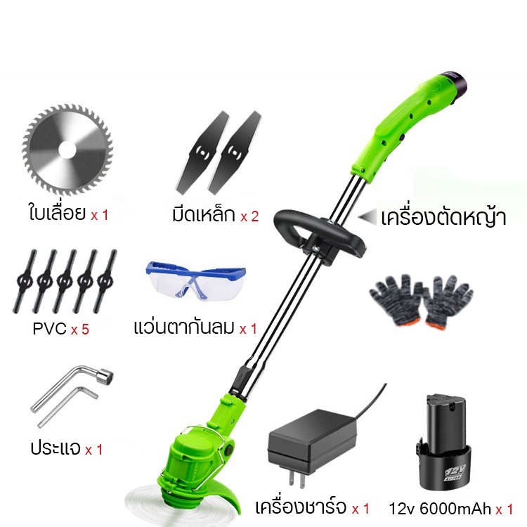 เครื่องตัดหญ้า เครื่องตัดหญ้าไฟฟ้า มีการรับประกัน เครื่องตัดหญ้าไร้สาย เครื่องตัดหญ้าแบต แถมชุดกำจัดวัชพืช5ชิ้น