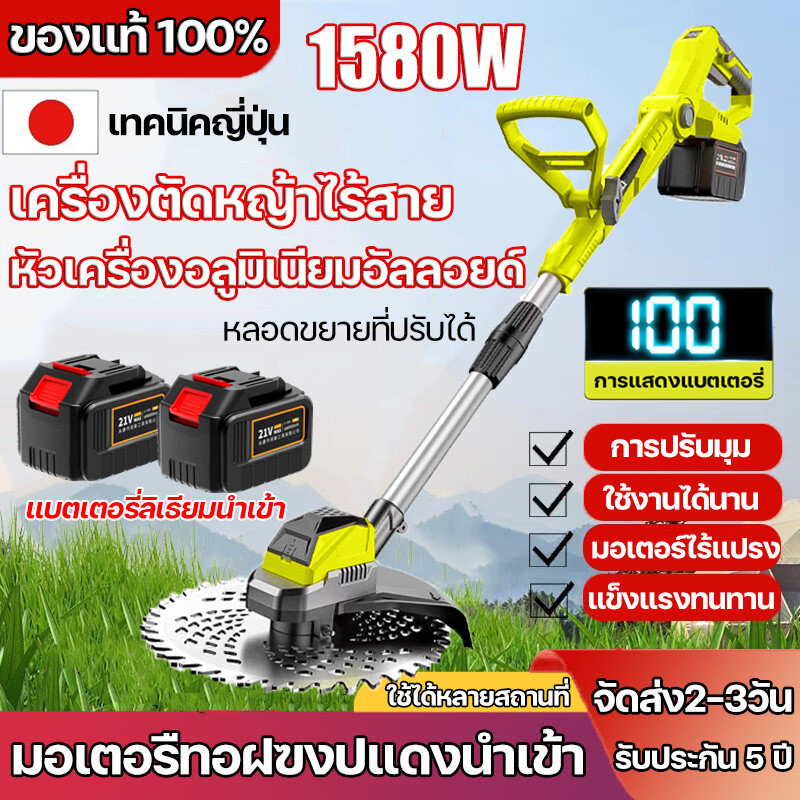เครื่องตัดหญ้าไร้สาย เครื่องตัดหญ้า1580W เครื่องตัดหญ้าไฟฟ้า เครื่องตัดหญ้าแบตเตอรี่ หลอดขยายที่ปรับได้ มอเตอร์ไร้แปรง