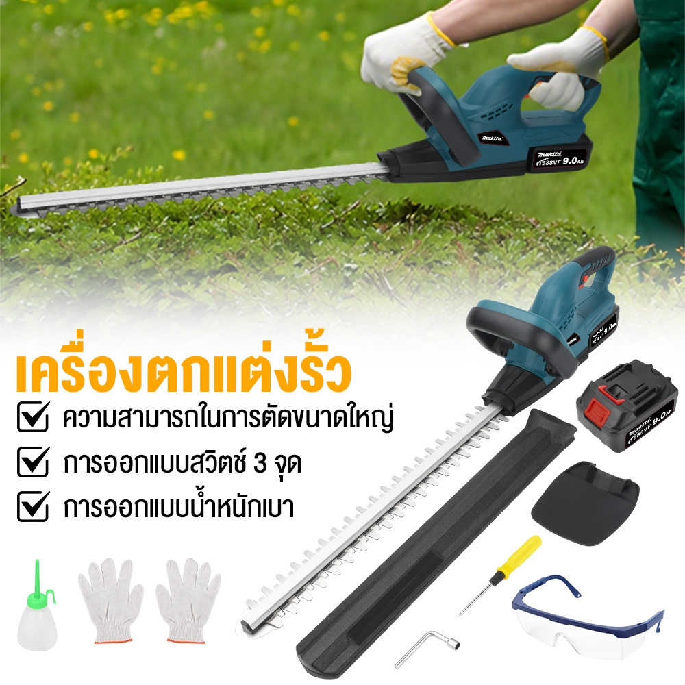 เครื่องตัดแต่งพุ่มไม้ไร้สาย 22 นิ้ว ใบมีดสองคม ตัดแต่งกิ่ง ไร้สาย แบตเตอรี่ลิเธียมไฟฟ้าเครื่องตัดหญ้าแบบชาร์