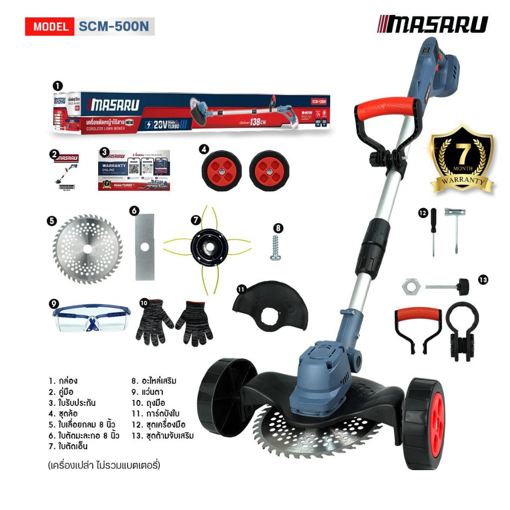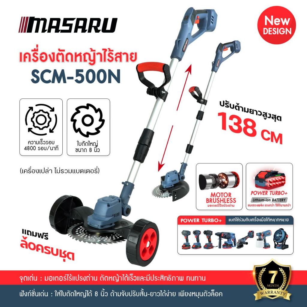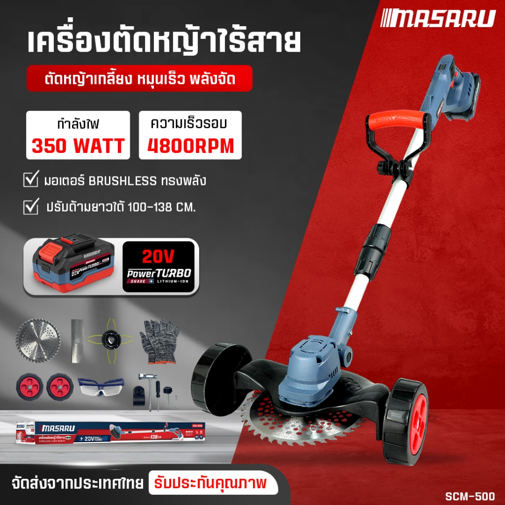 เครื่องตัดหญ้า MASARU เครื่องตัดหญ้าไฟฟ้าไร้สาย SCM-500 เครื่องตัดหญ้าพกพา มีล้อ อุปกรณ์ครบชุด