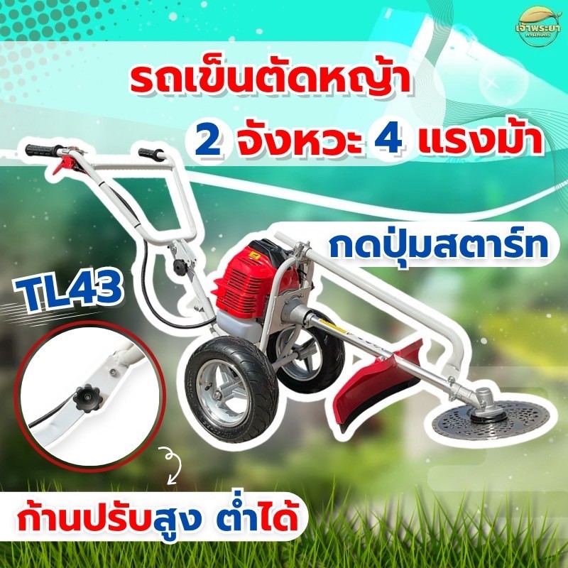 เครื่องตัดหญ้า รถเข็นตัดหญ้า 2 จังหวะ 4 แรงม้า 52CC (CAR) รุ่นสตาทเบา และ รุ่นกดปุ่มสตาท