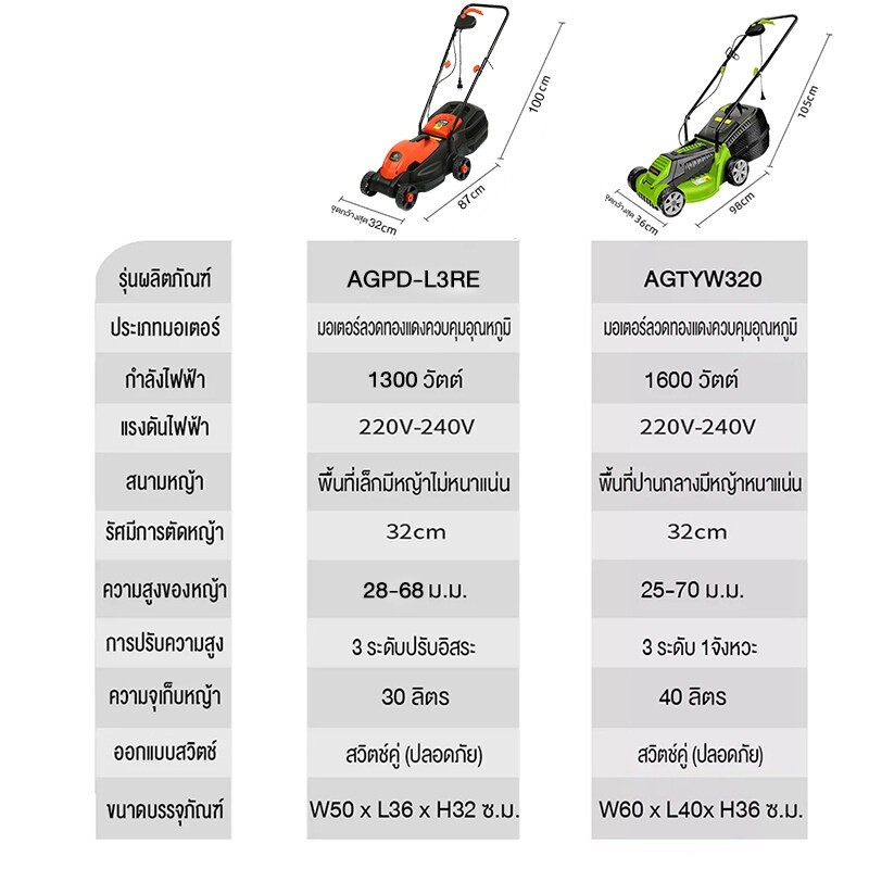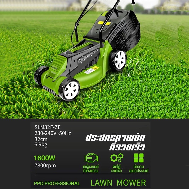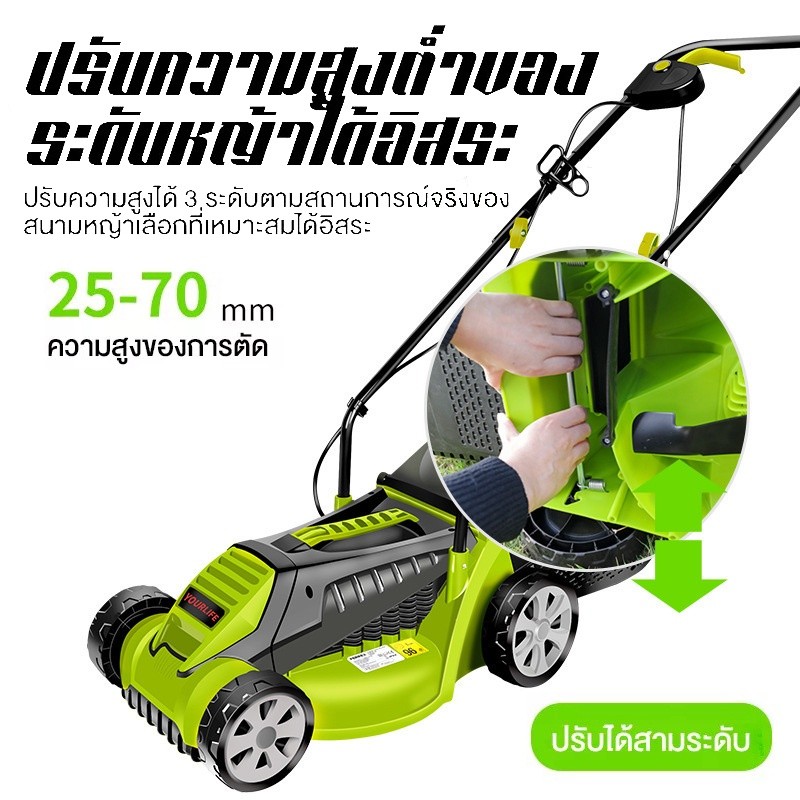 Celoglo รถเข็นเครื่องตัดหญ้าไฟฟ้าแบบมือผลัก สำหรับใช้งานในครัวเรือนแบบมัลติฟังก์ชั่น1600W