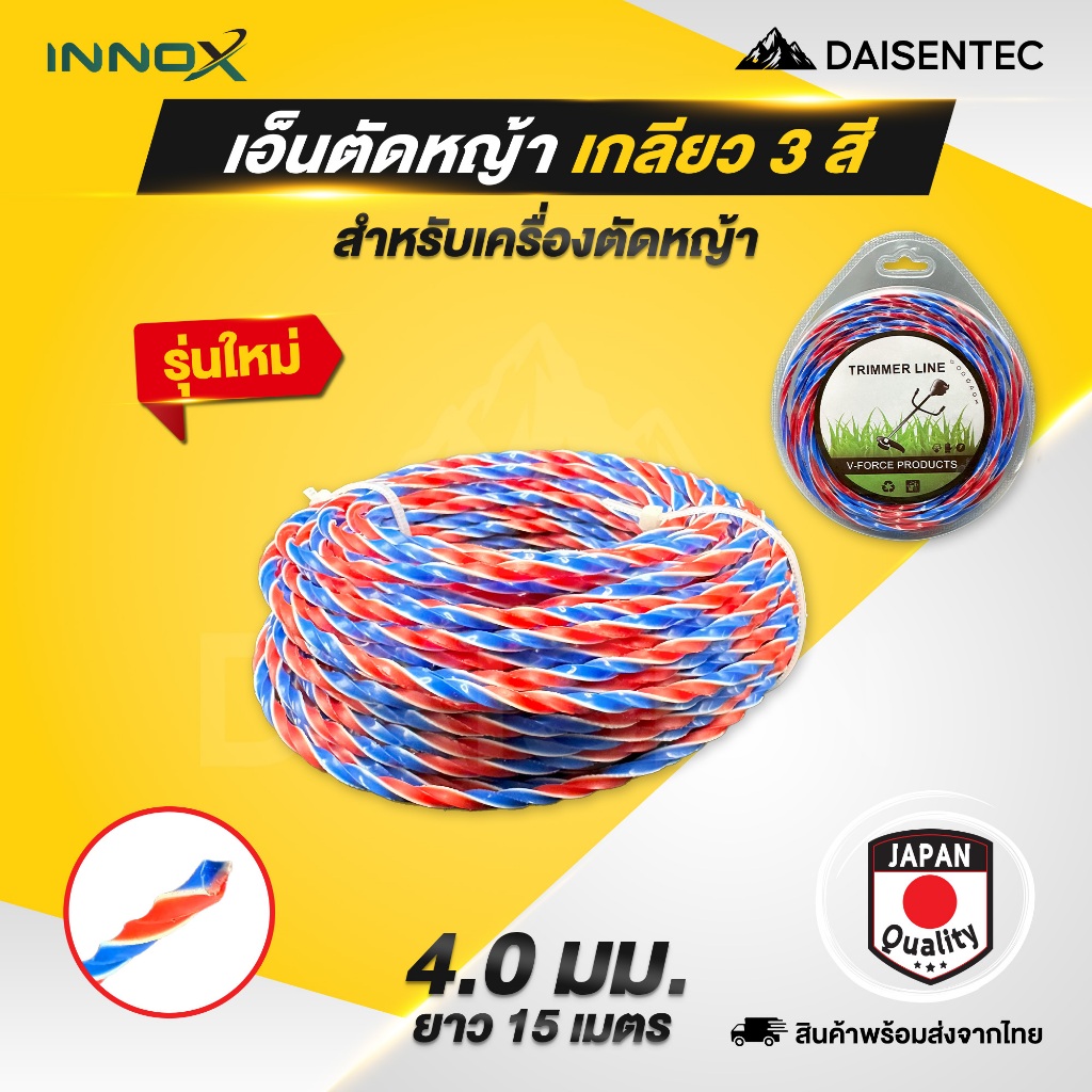 DAISENTEC – เอ็นตัดหญ้า แบบเกลียว 2.4/2.7/3.0/4.0 มิลยาว 15 เมตร 3 สี สายเอ็นตัดหญ้า อย่างดี