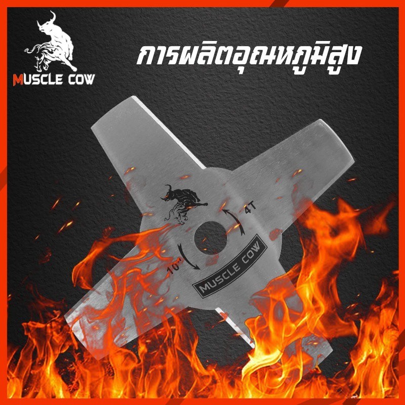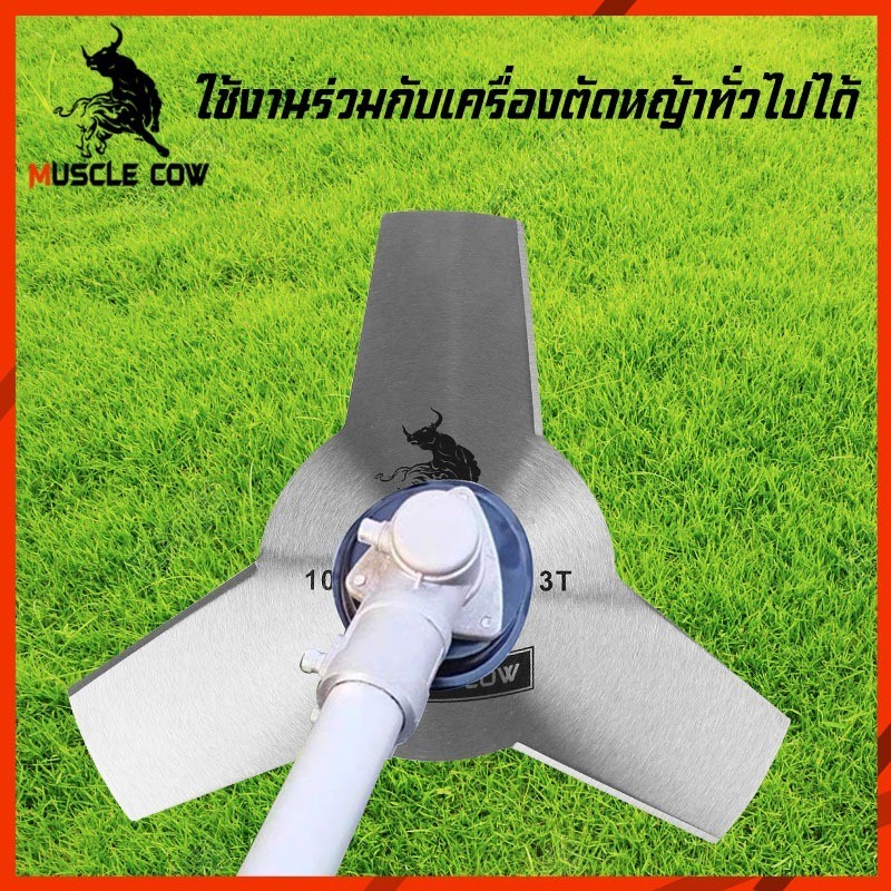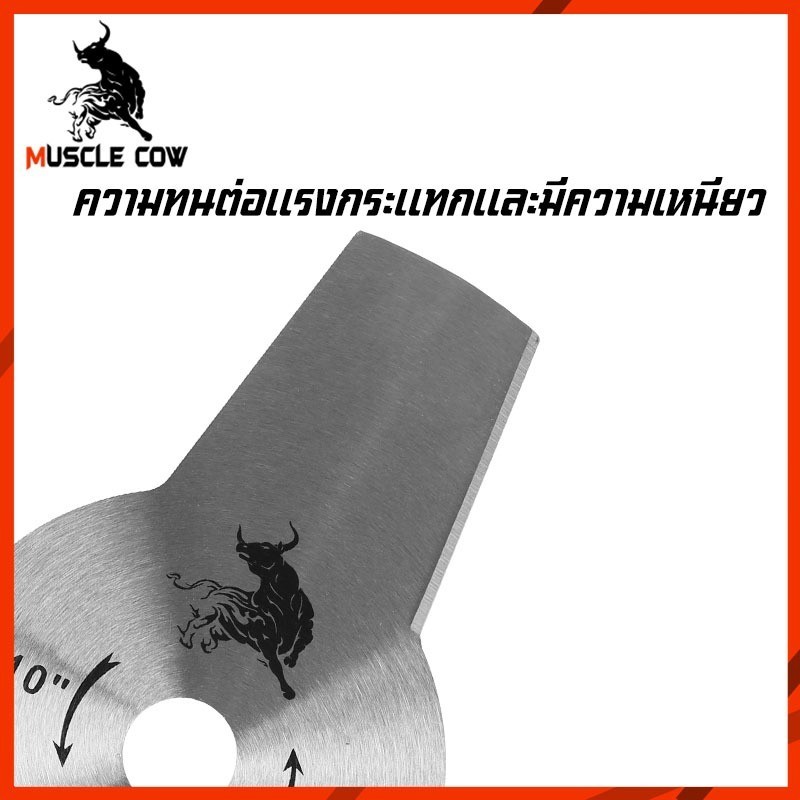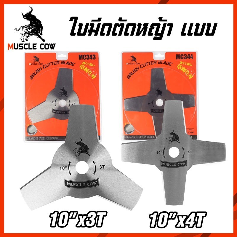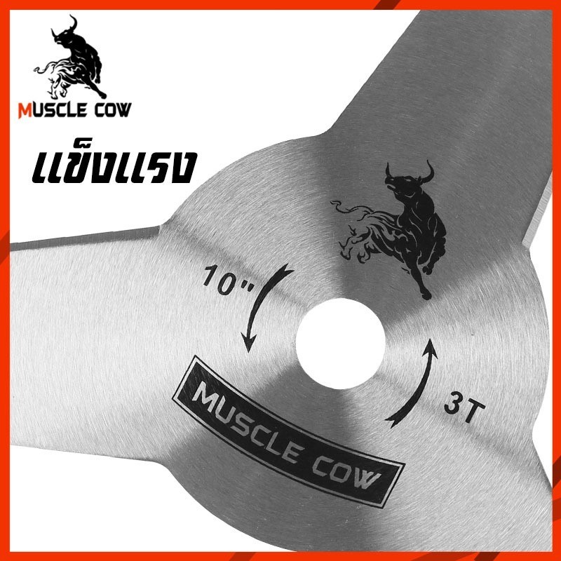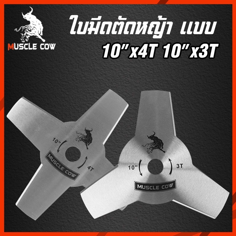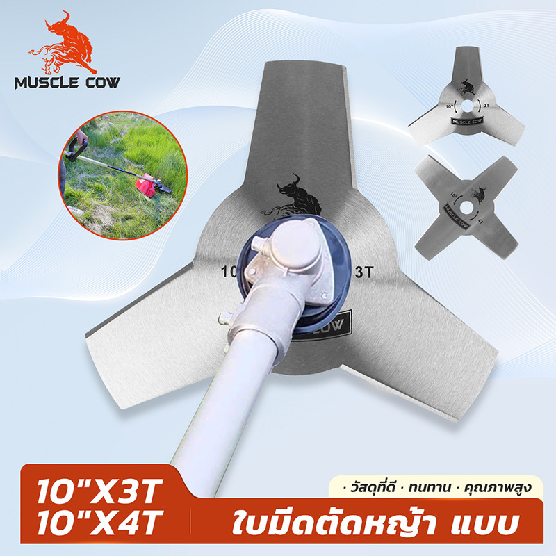 MUSCLE COW ใบมีดตัดหญ้า 10 นิ้ว รุ่น 3T/4T ทำจากเหล็กคุณภาพสูง คม ทนทาน ตัดหญ้าและพุ่มไม้ได้รวดเร็ว