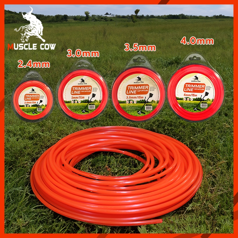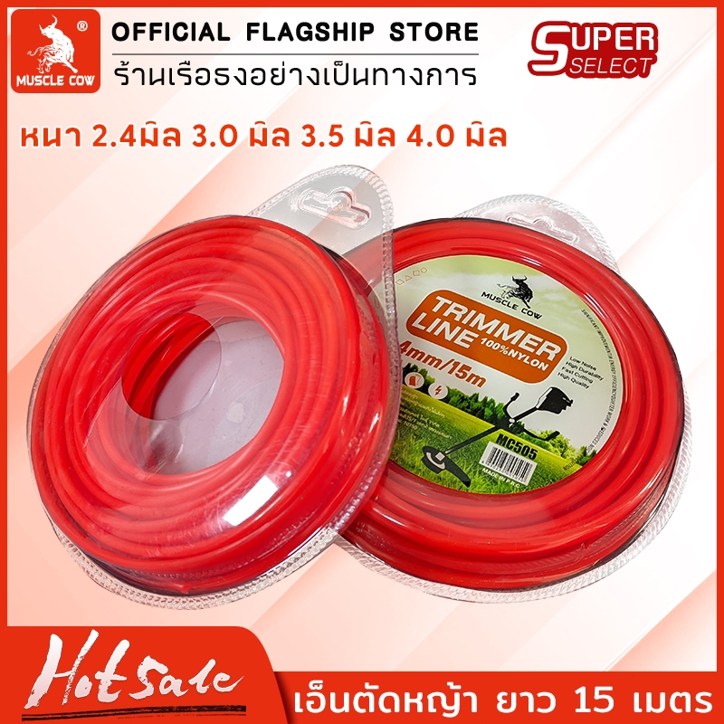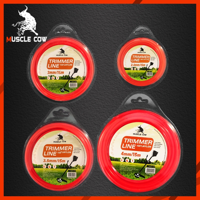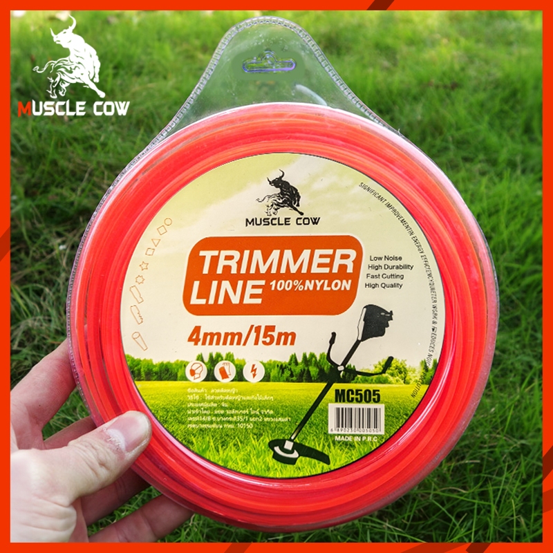 Muscle Cow สายเอ็นตัดหญ้า15เมตร ขนาด 2.5/3/3.5/4มิล (เอ็นหนาและเหนียว) เอ็นตัดหญ้า จานเอ็นตัดหญ้า ใช้ได้กับเครื่องตัดหญ้