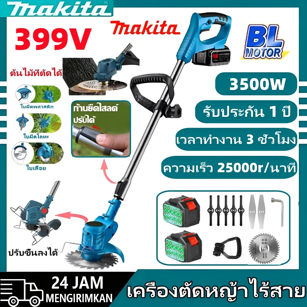 Makita เครื่องตัดหญ้า 399V เครื่องตัดหญ้าไฟฟ้า ตัดหญ้า กิ่งไม้ อุปกรณ์ครบชุด เครื่องตัดหญ้าไร้สาย Cordless lawn mower
