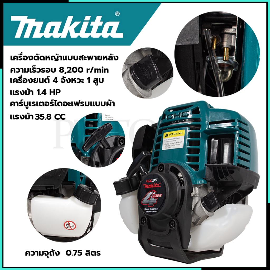 MAKITA เครื่องตัดหญ้าสะพายบ่า เบนซิน 4 จังหวะ รุ่น 350 (AAA) อุปกรณ์พร้อมใช้ SP PT