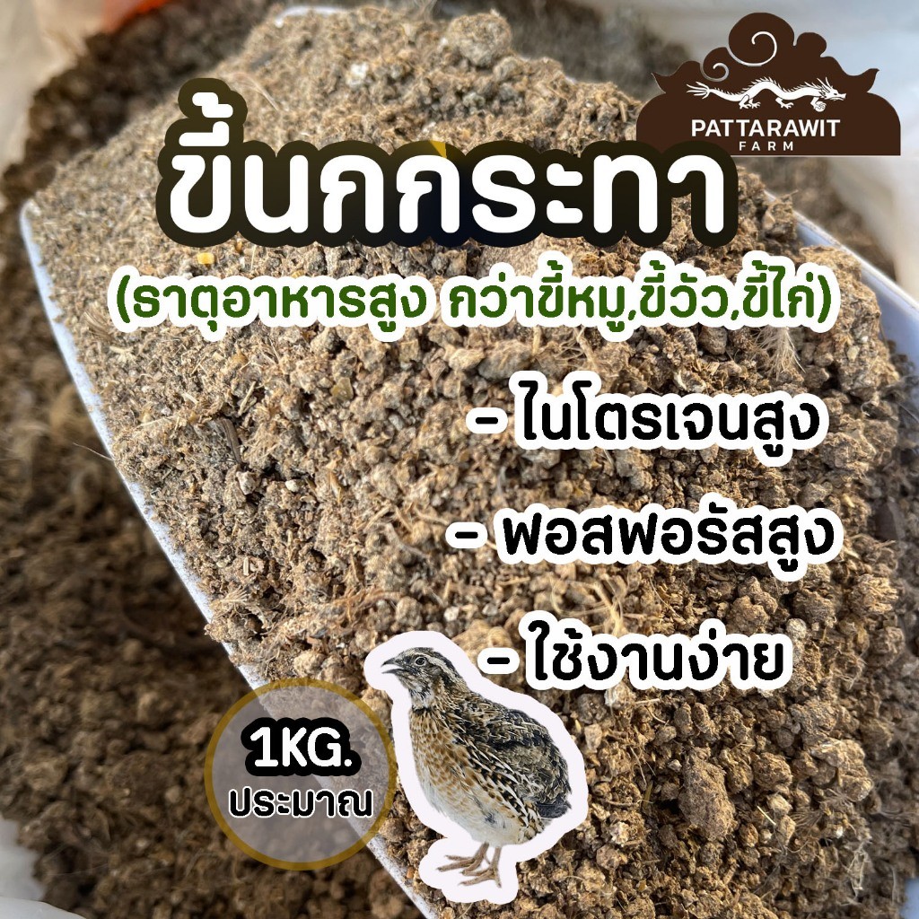 (2ถุง50)(5ถุง100)ขี้นกกระทา ขนาดประมาณ 1KG. ไนโตรเจนสูง 9% ธาตุอาหารเยอะกว่าขี้หมู ขี้วัว ขี้ไก่